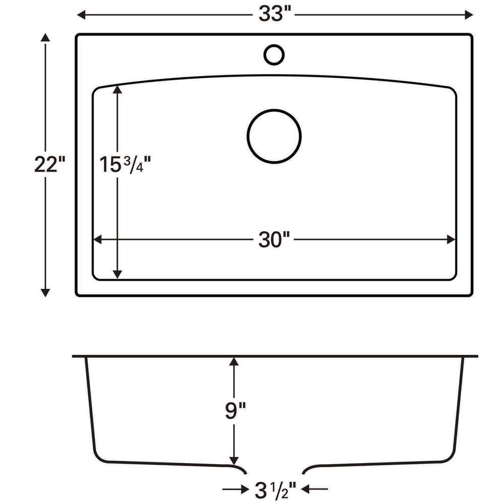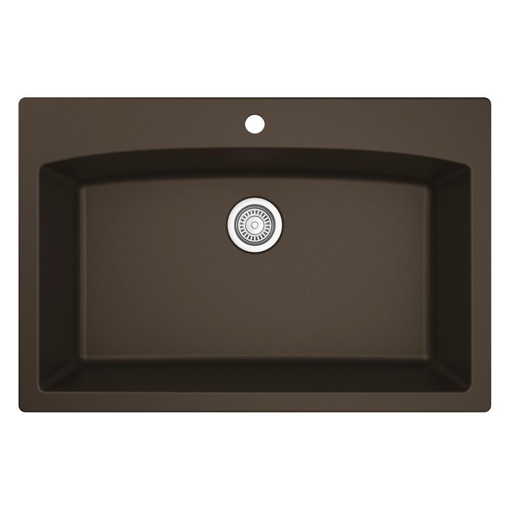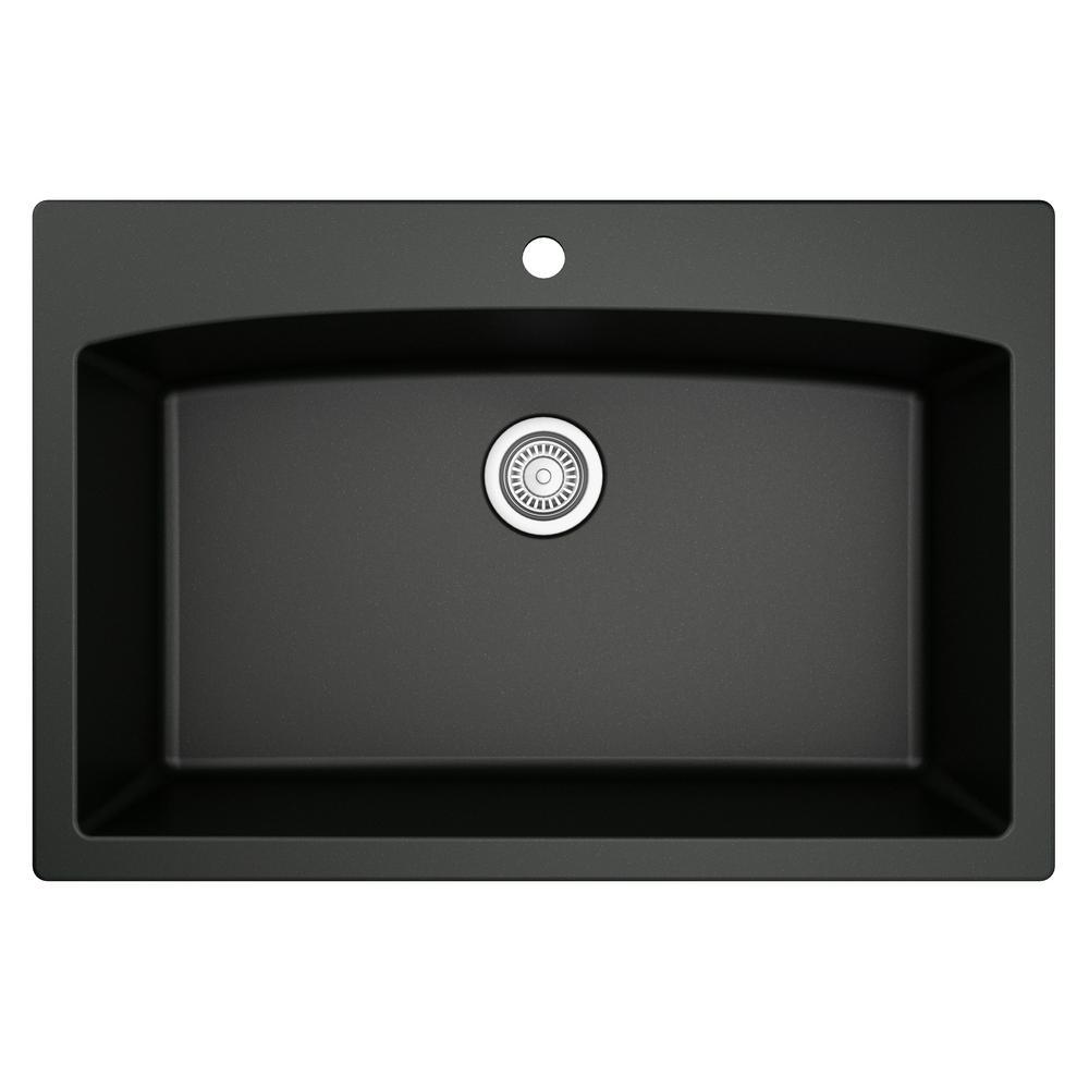 Drop-In Quartz Composite 33 in. 1-Hole Single Bowl Kitchen Sink in Black