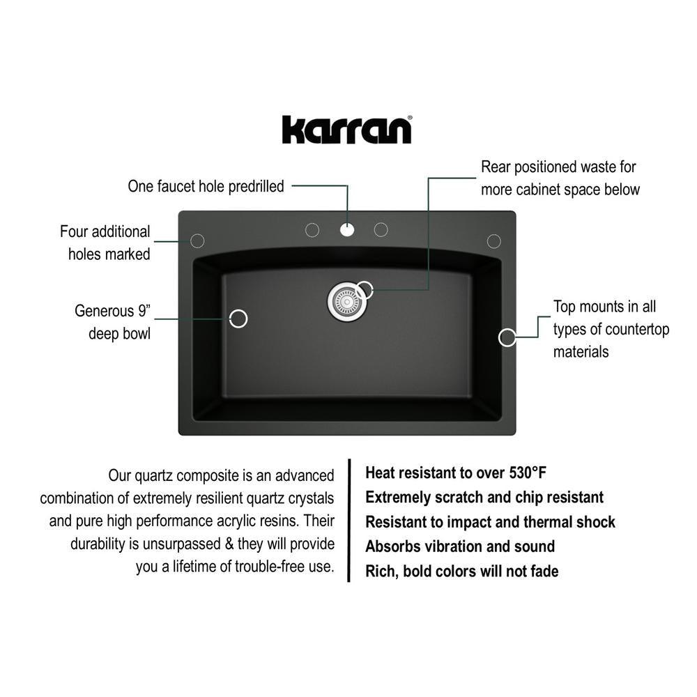 • Garbage Disposal: Karran Quartz Kitchen Sinks are compatible with most garbage disposals. Garbage disposals sold separately.