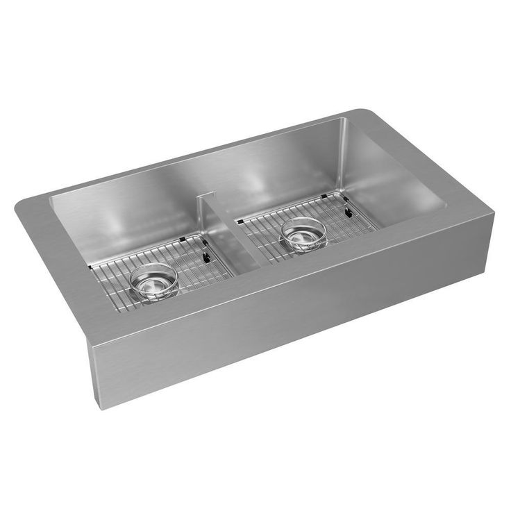 Crosstown Farmhouse/Apron-Front Stainless Steel 36 in. Double Bowl Kitchen Sink with Bottom Grids and Drains