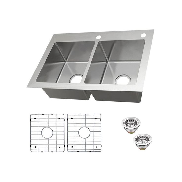 Dual Mount 18-Gauge Stainless Steel 33 in. 2-Hole 50/50 Double Bowl Kitchen Sink with Grid and Drain Assemblies
