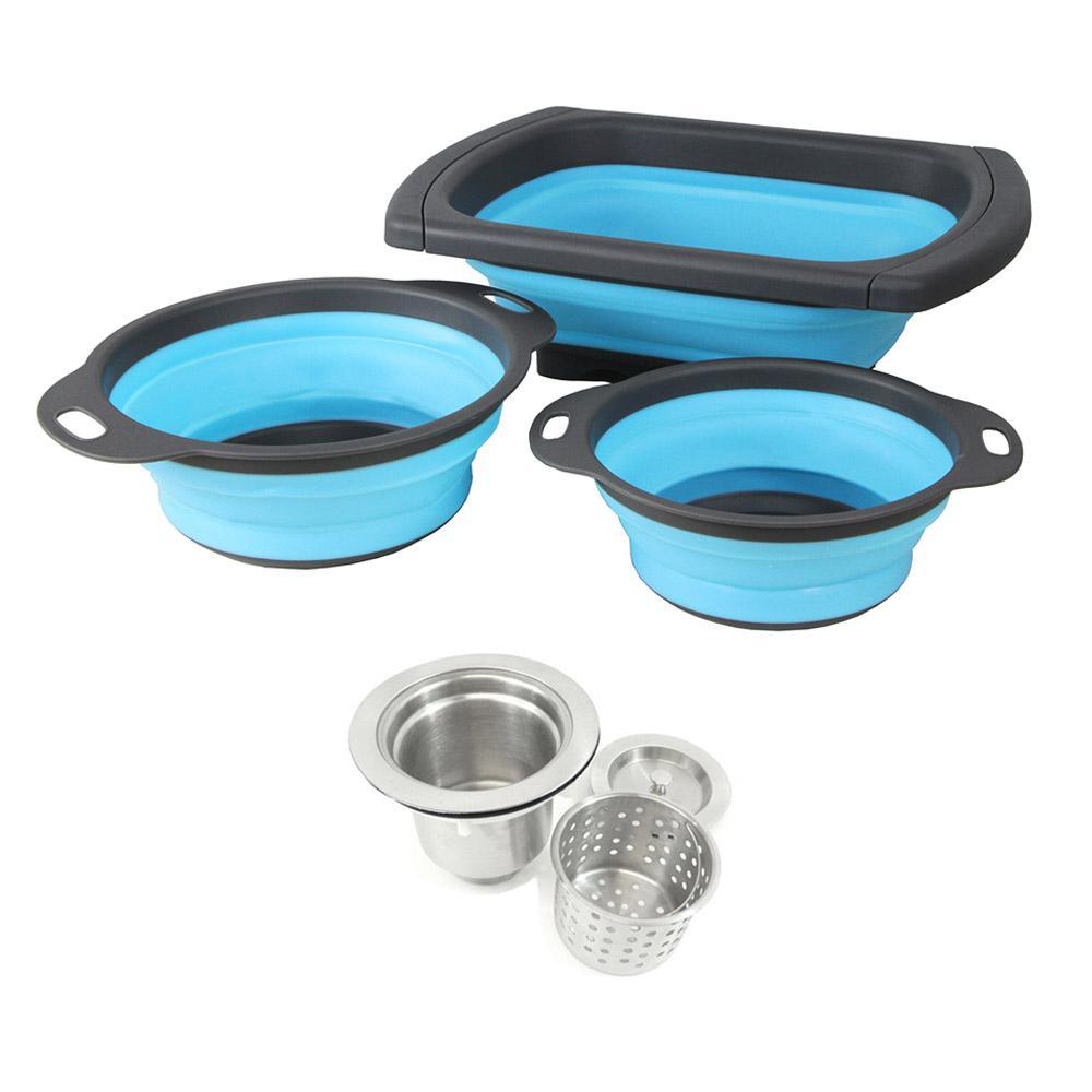 • Full package - to relieve your kitchen tasks, the kitchen sink combo includes 3 deluxe strainers with lift-out basket to collect food waste, and a set of three silicone colanders to drain food like vegetables and pasta