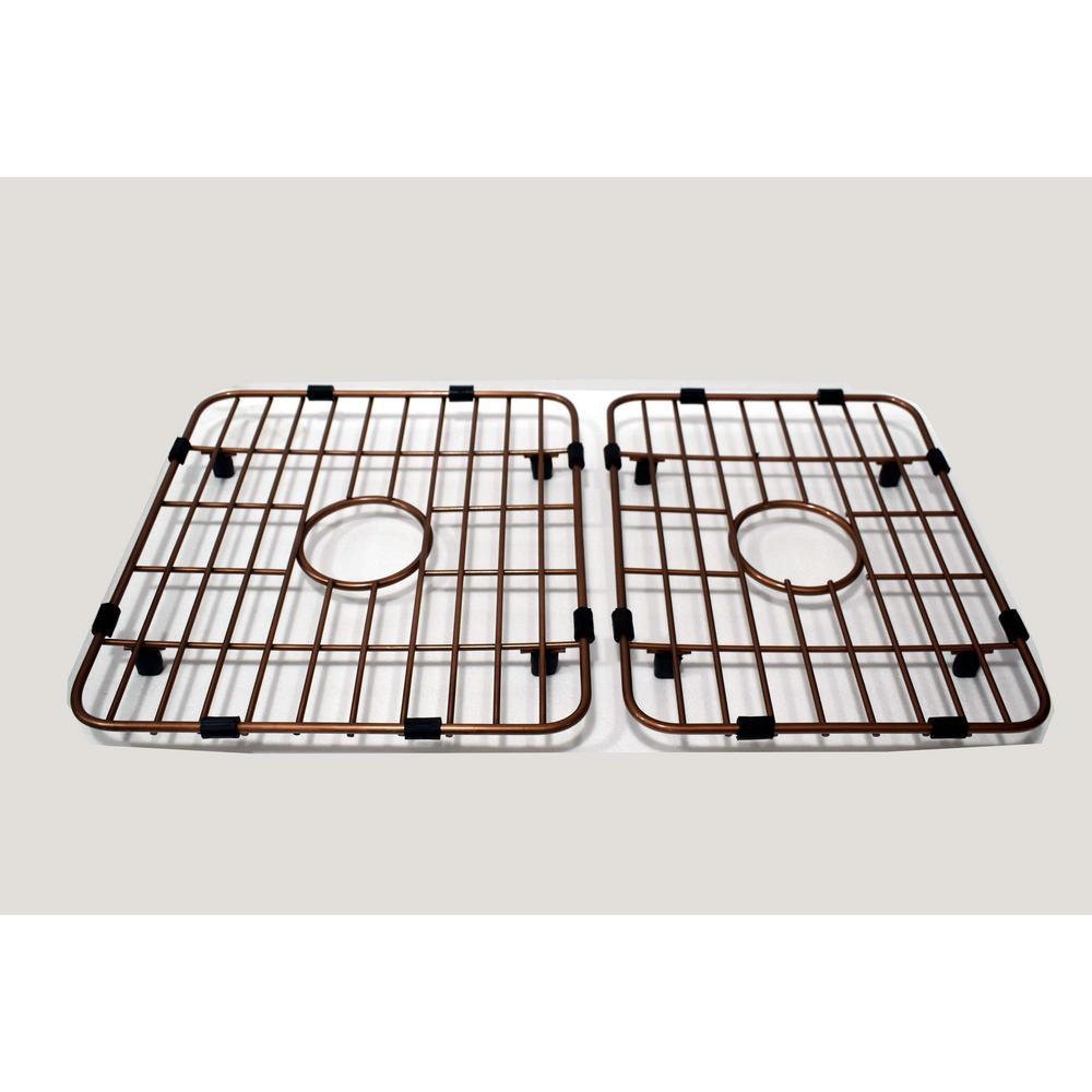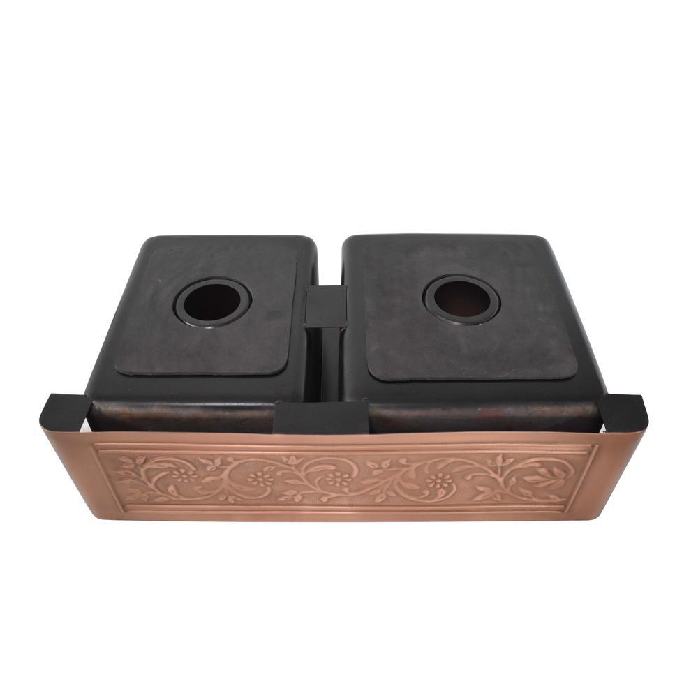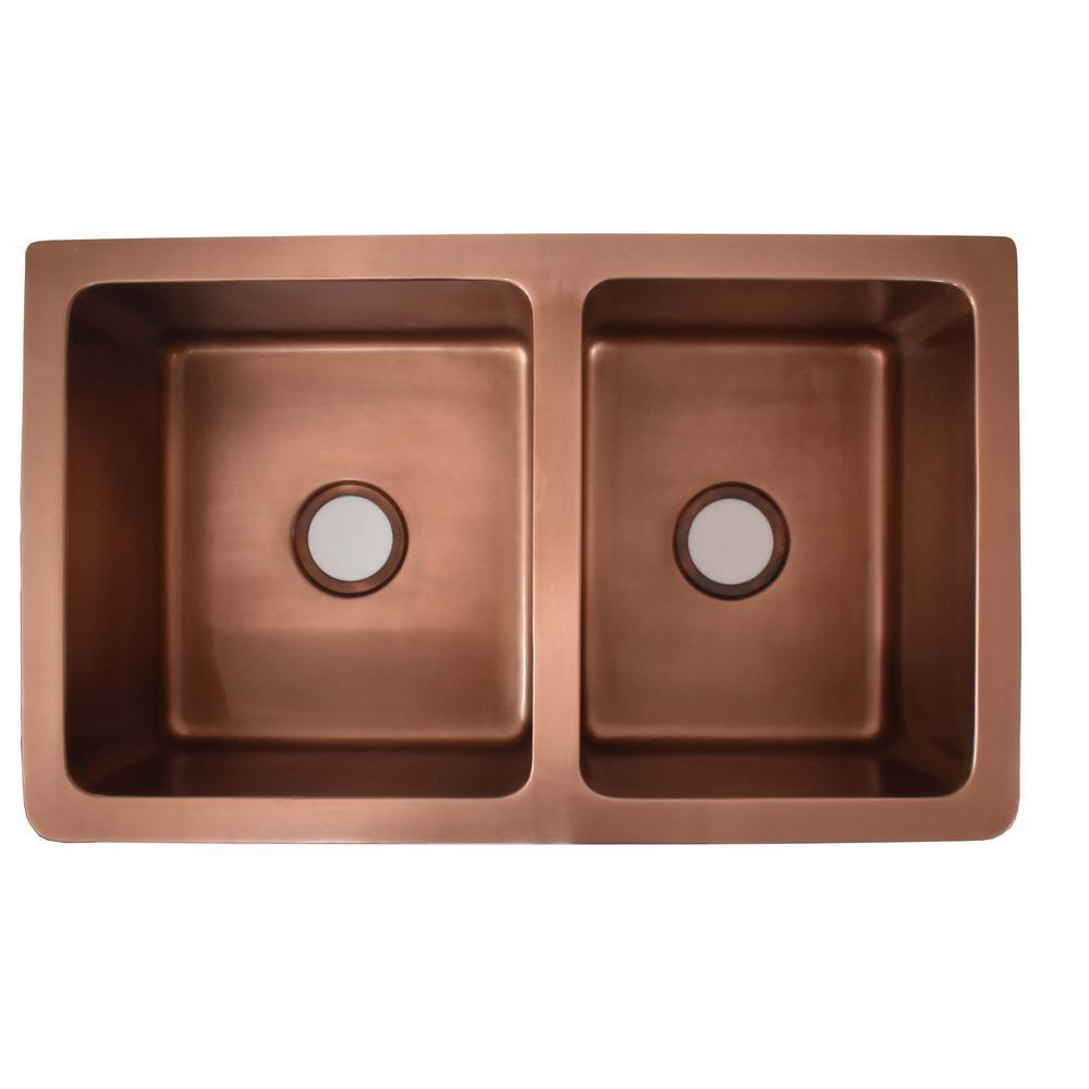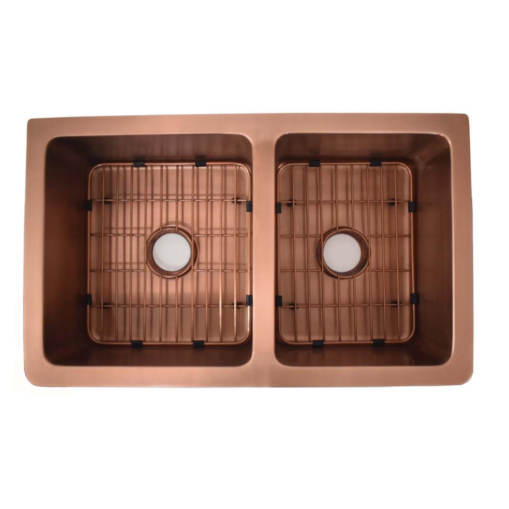 Versailles Farmhouse 33 in. 55/45 Double Bowl Kitchen Sink in Pure Copper with Bottom Grid