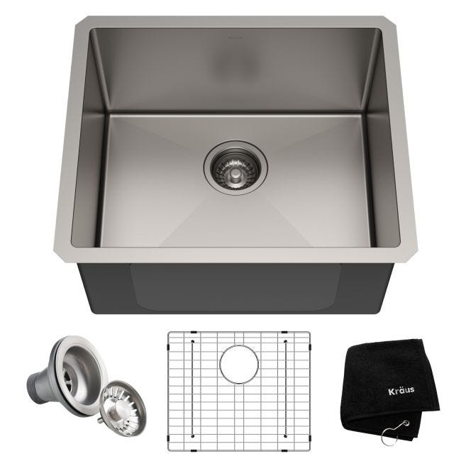 | Included Accessories | Protective bottom grid, drain assembly with removable strainer, Kraus kitchen towel, mounting hardware, cutout template |
