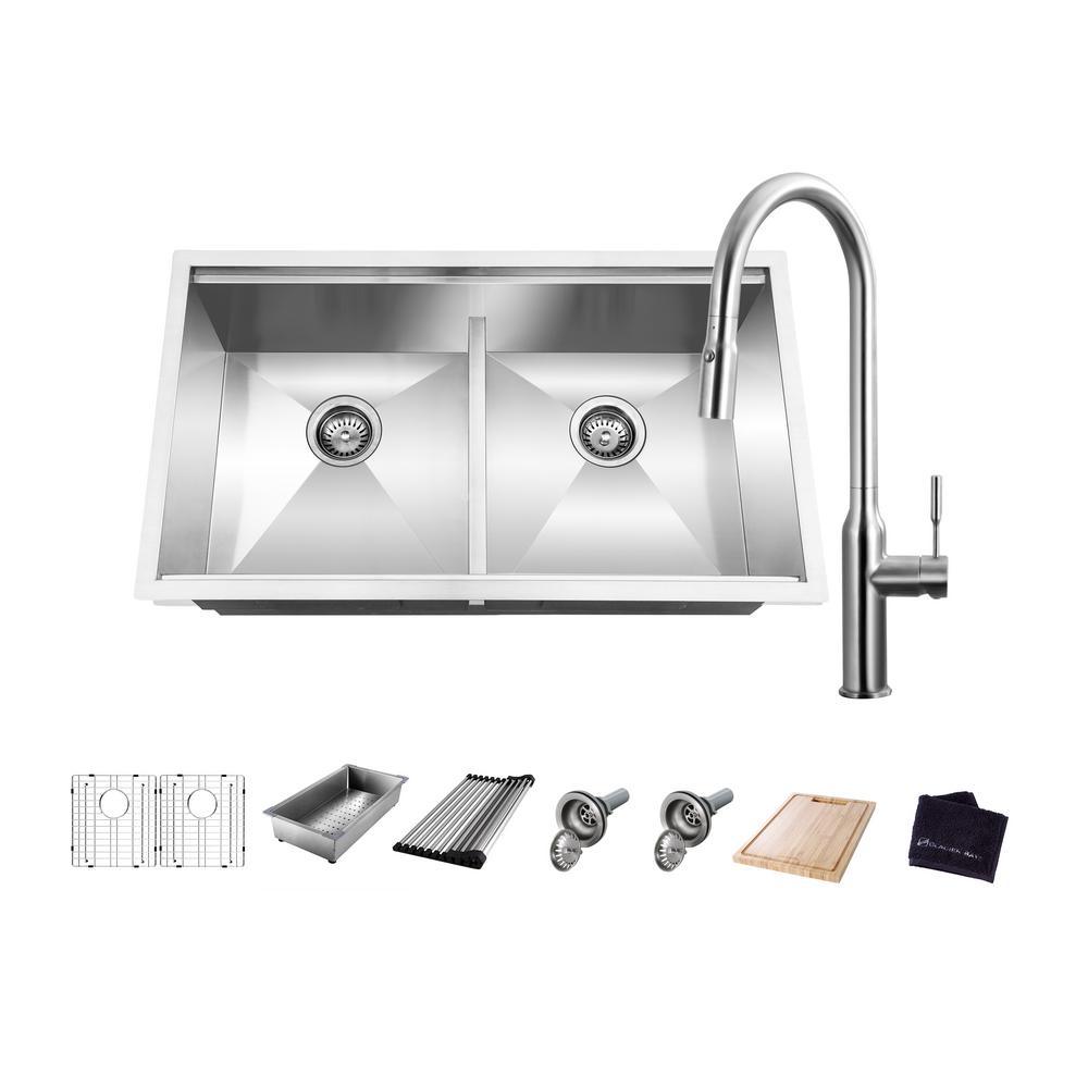 All-in-One Undermount Stainless Steel 33 in. 50/50 Double Bowl Workstation Kitchen Sink with Faucet and Accessories