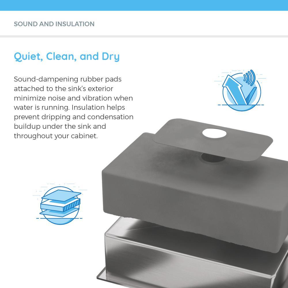 • Noise cessation - the tinny sounds of running water or echo of dropped dishware is muffled by sound-dampening pads applied to its underside