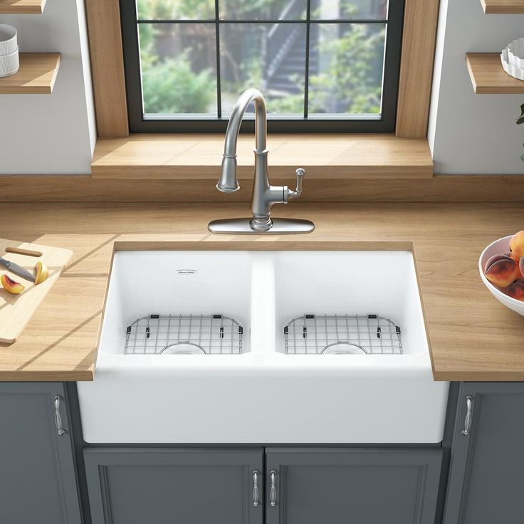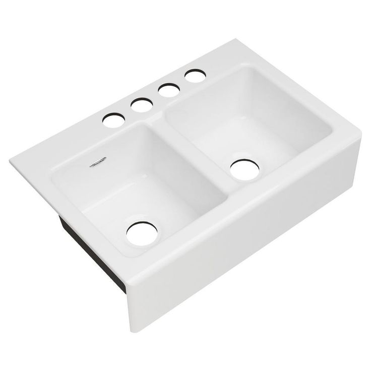 Delancey Farmhouse Apron Front Cast Iron 33 in. 4-Hole Double Bowl Kitchen Sink in Brilliant White