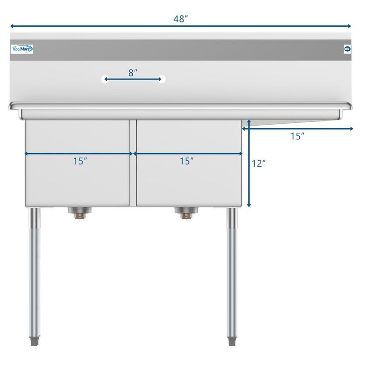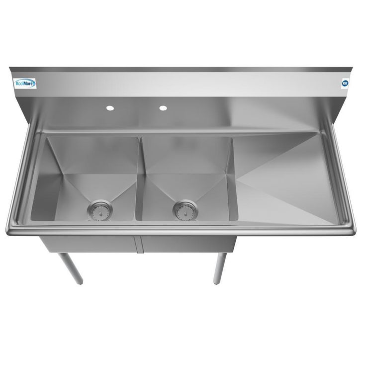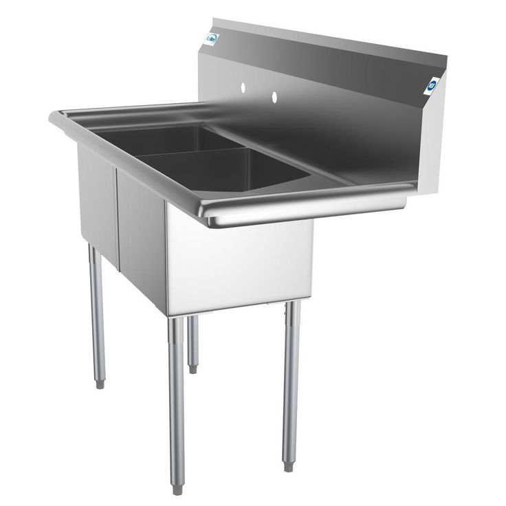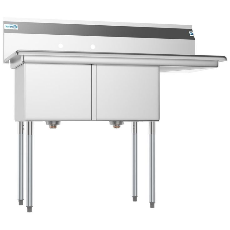 Freestanding Stainless Steel 48 in. 2-Hole Double Bowl Commercial Kitchen Sink Right Drainboard