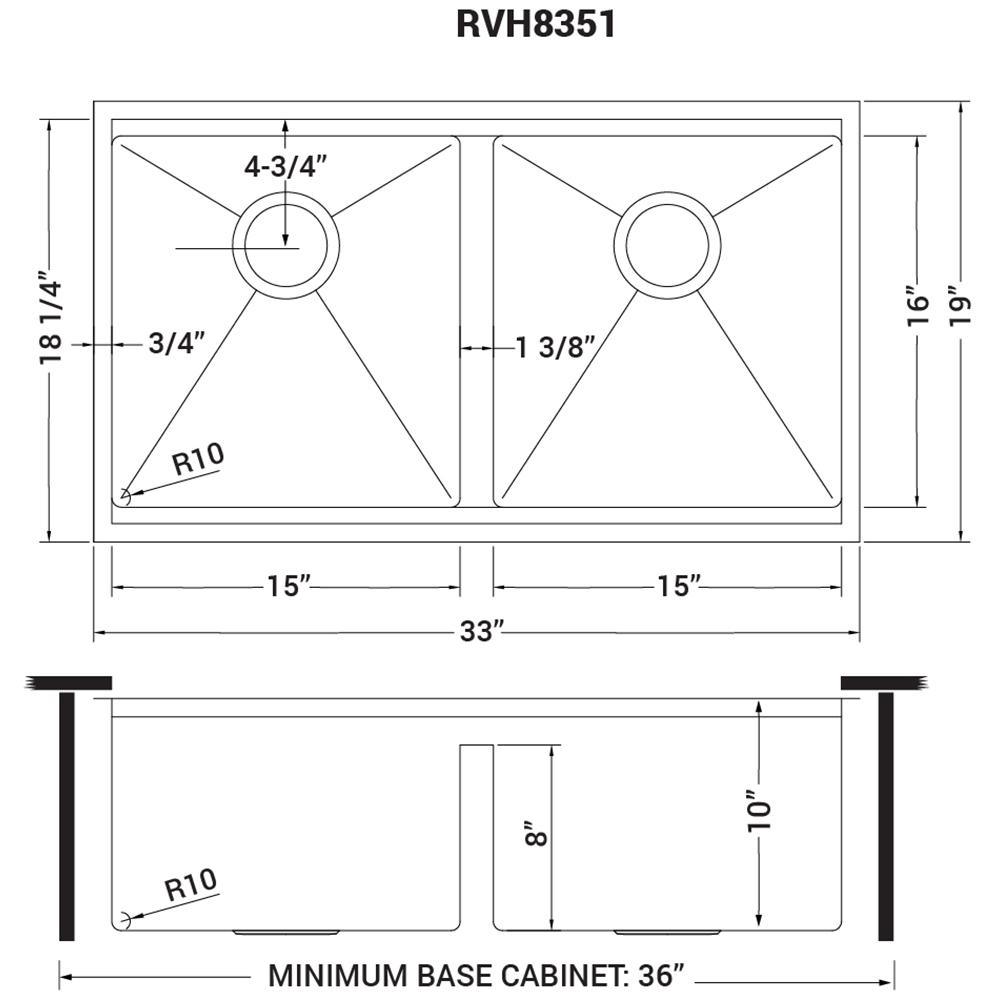 • edgeX 10mm Tight Radius - Ruvati's unique 10mm radius inside corners offer a slightly curved corner for easy cleaning while at the same time retaining the resolutely modern look