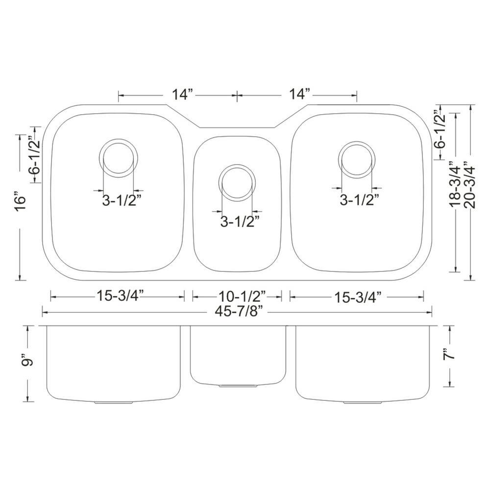Speciality Series Undermount Stainless Steel 46 in. 40/20/40 Triple Bowl Kitchen Sink