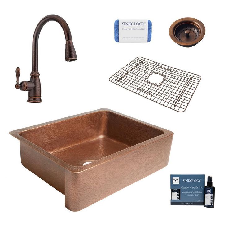 Corbet All-in-One Farmhouse Apron-Front Copper 30 in. Single Bowl Kitchen Sink with Pfister Bronze Faucet and Strainer