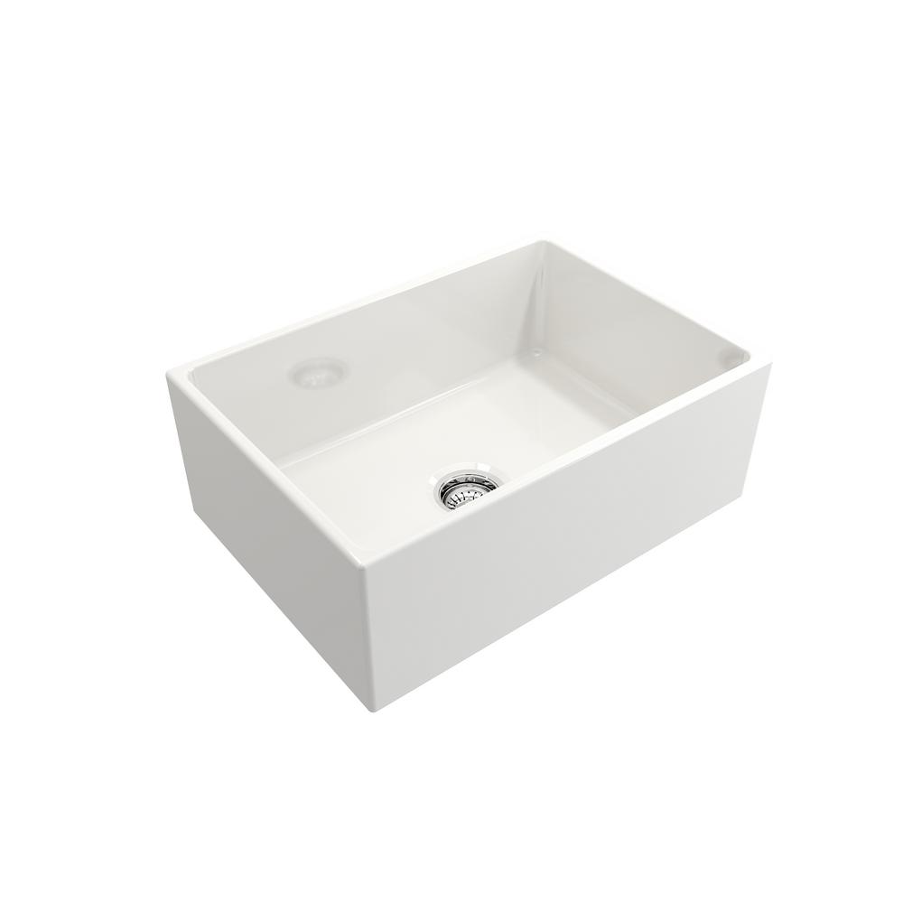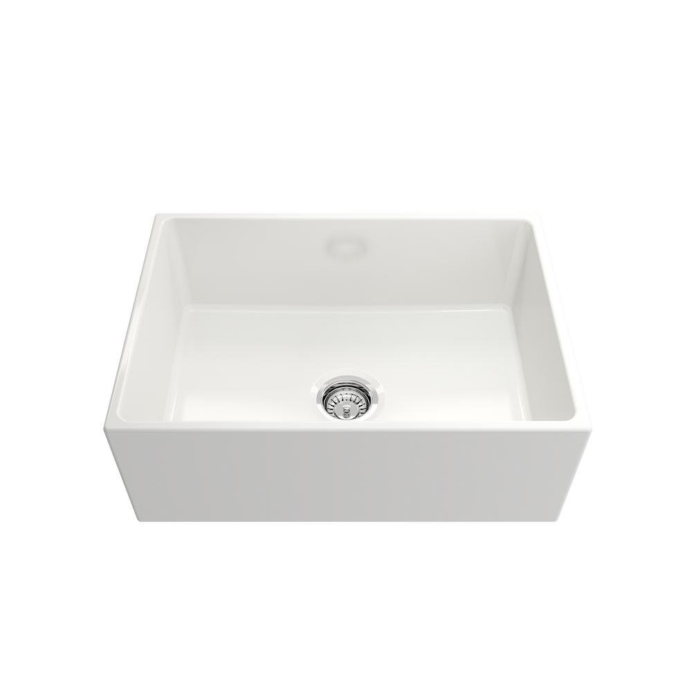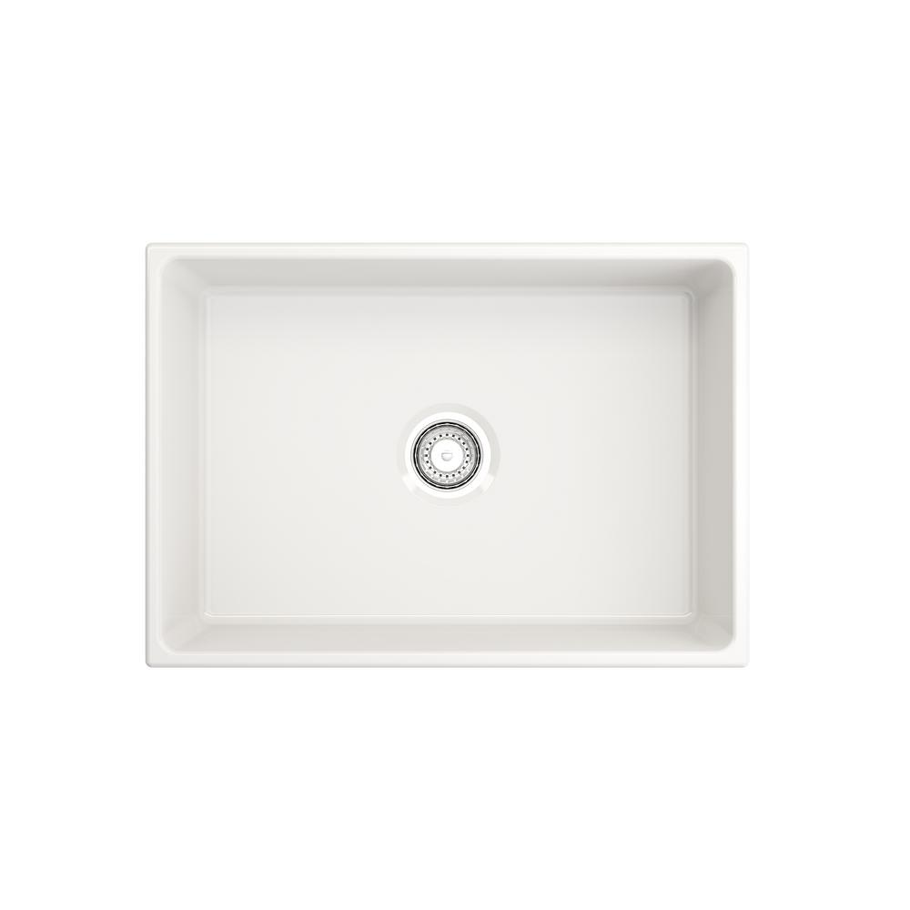 • Apron-front, fireclay farmhouse sink fully glazed on all sides with 100% non-porous surface designed to resist stains and build-up of mineral deposits