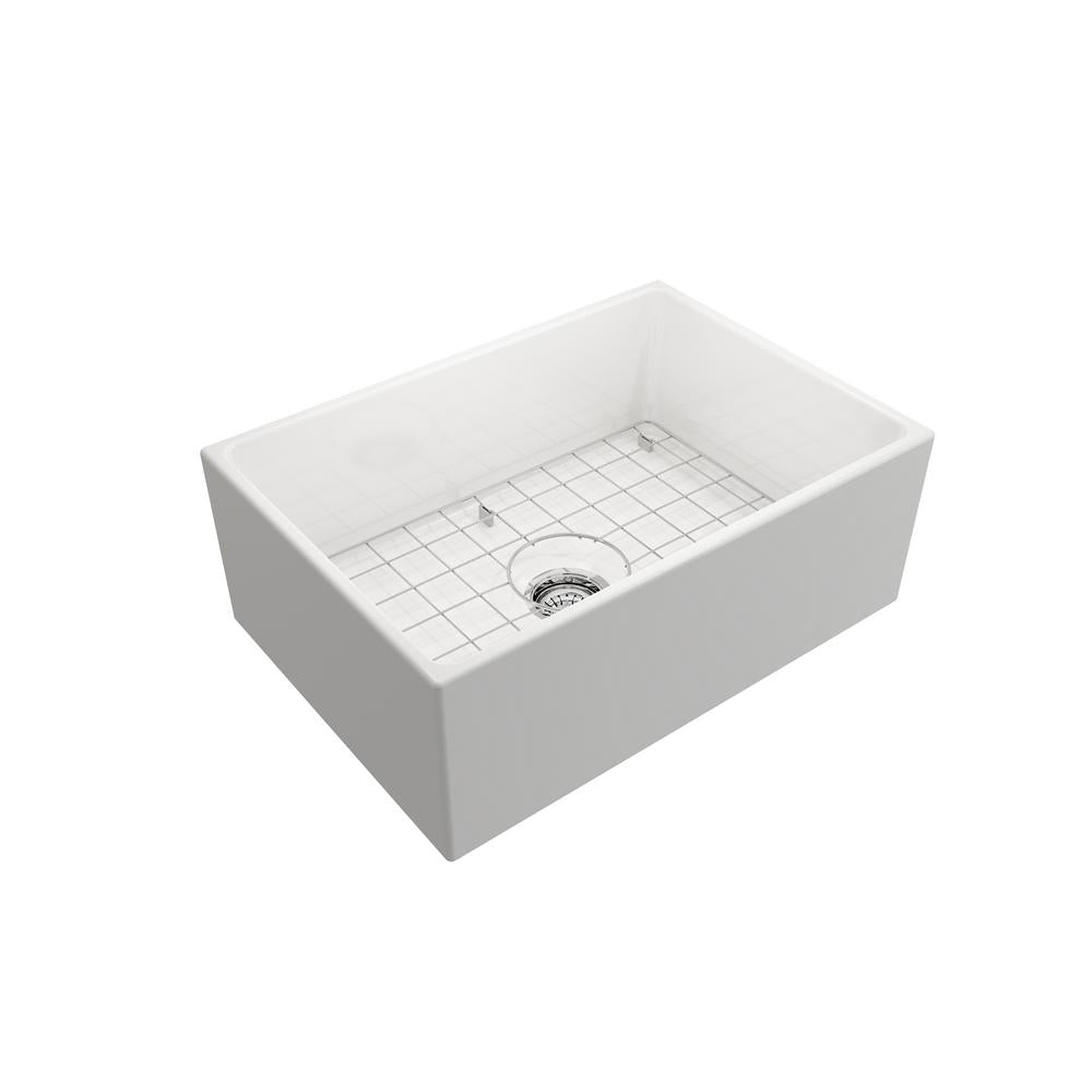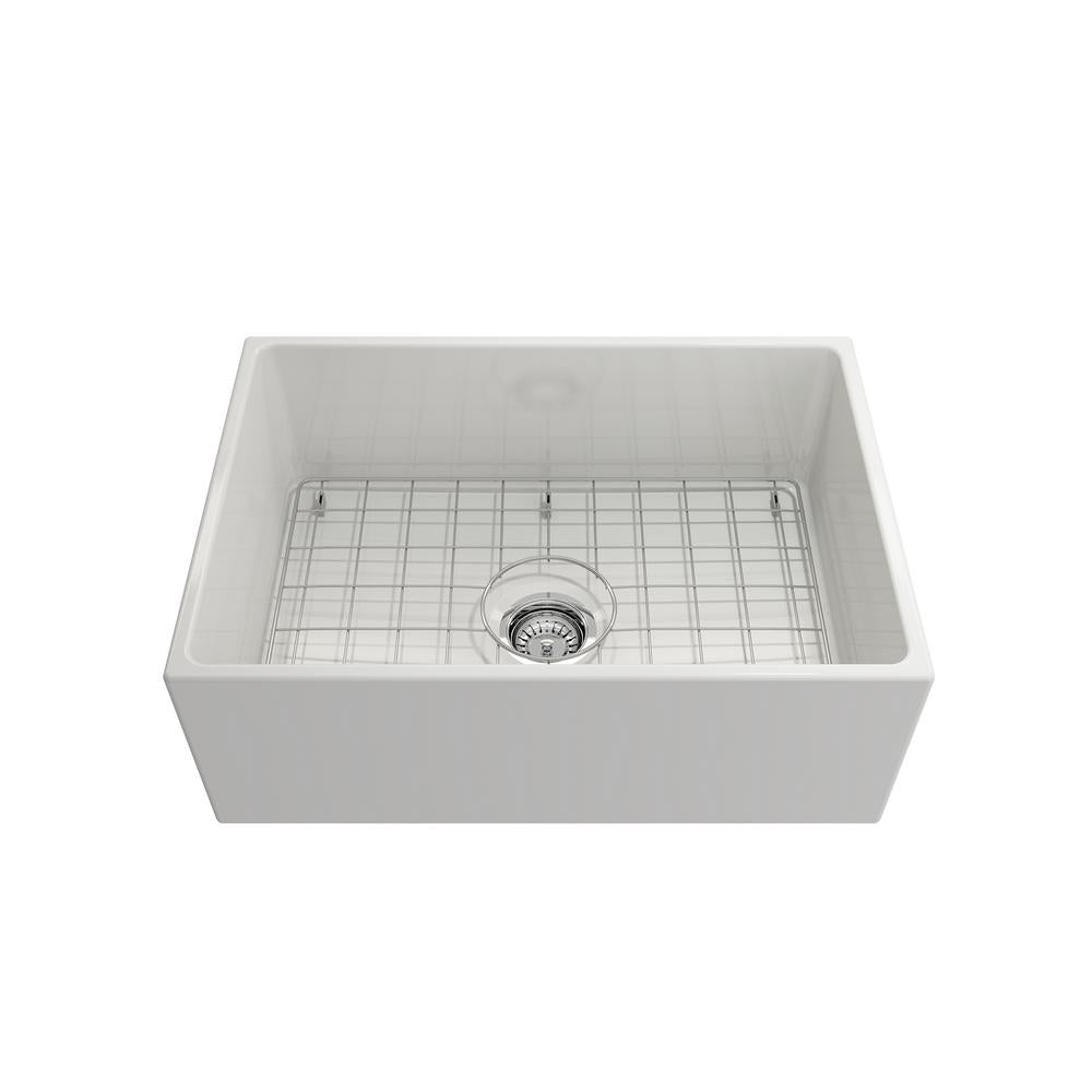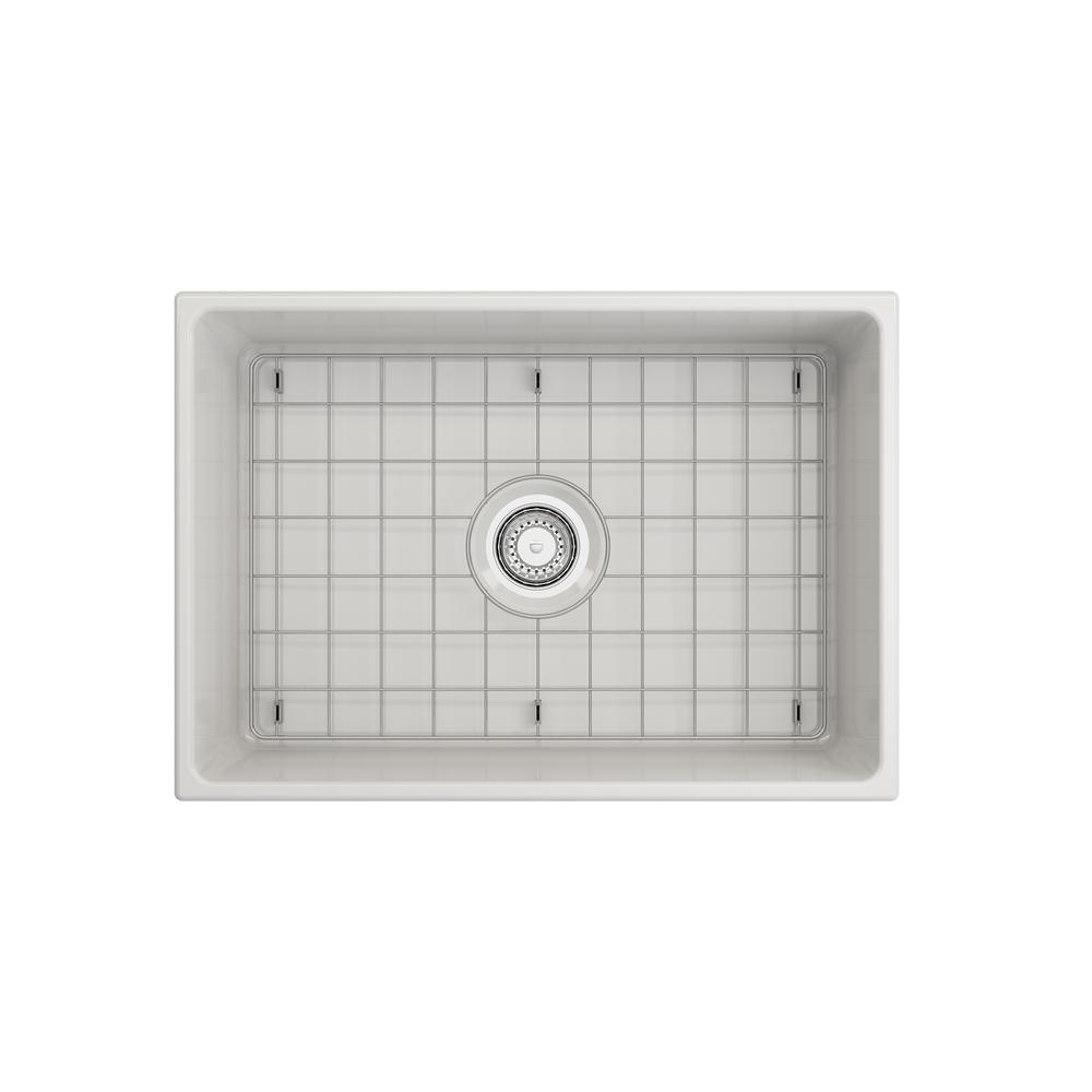 Farmhouse Apron-Front Fireclay 27 in. Single Bowl Kitchen Sink in White with Grid