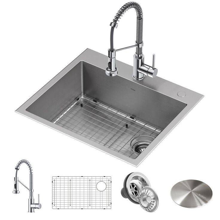 Loften All-in-One Dual Mount Drop-In Stainless Steel 25in. Single Bowl Kitchen Sink with Pull Down Faucet in Chrome