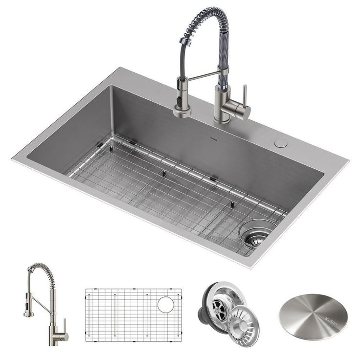 Loften All-in-One Dual Mount Stainless Steel 33in. Single Bowl Kitchen Sink with Pull Down Faucet in Chrome and Steel