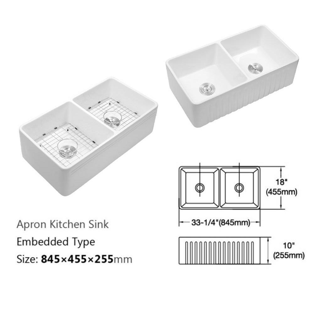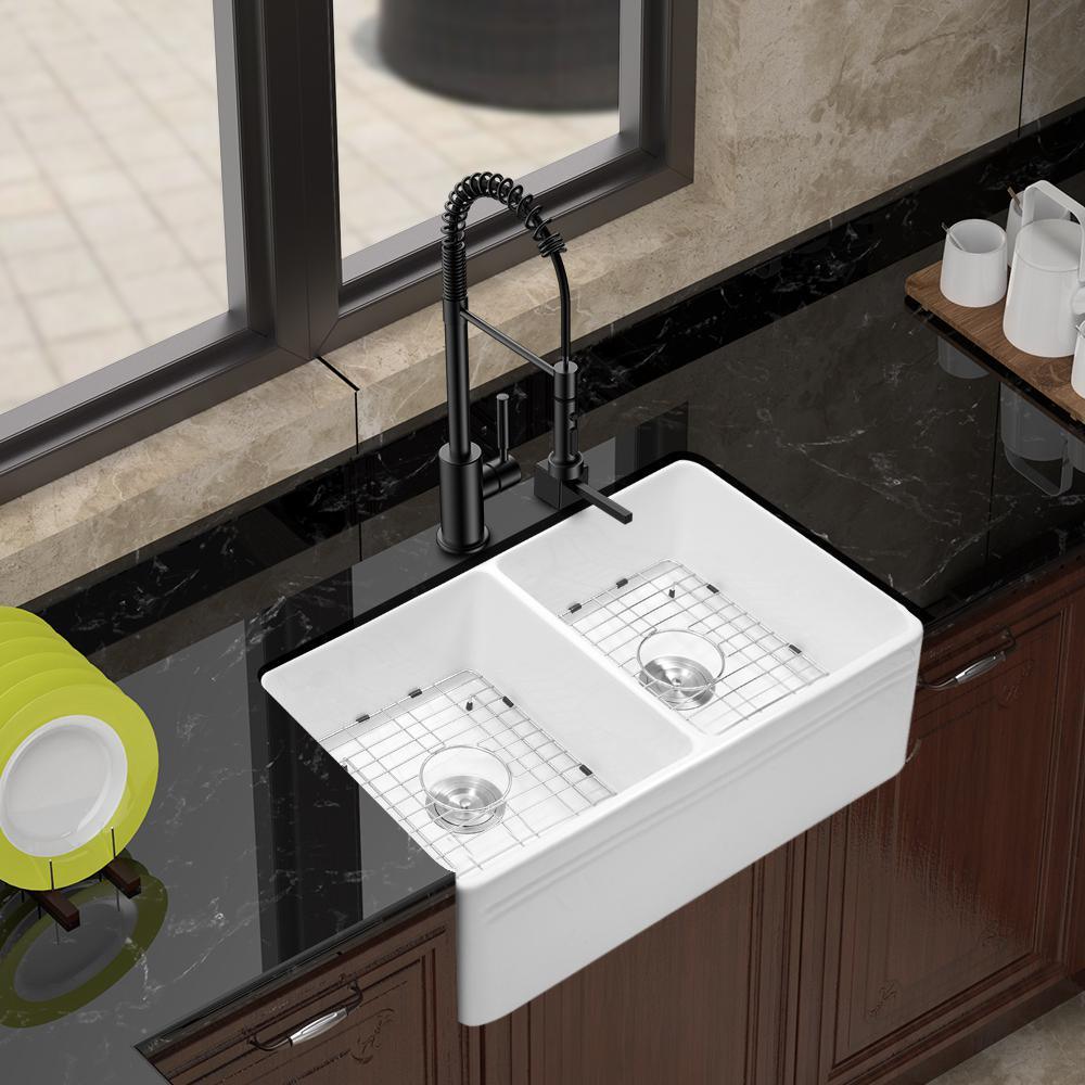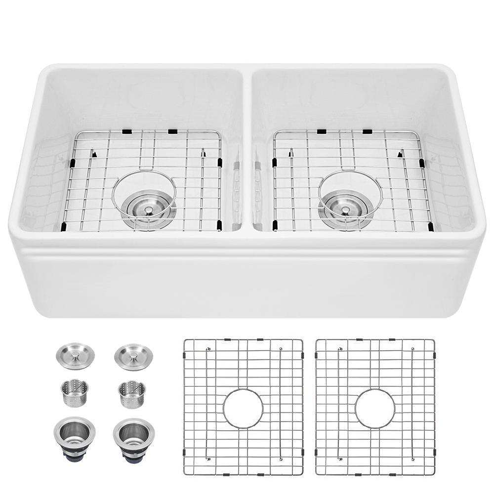 • White porcelain ceramic fireclay kitchen sink offers a traditional style of a classic farmhouse sink for families looking for premium design and durability