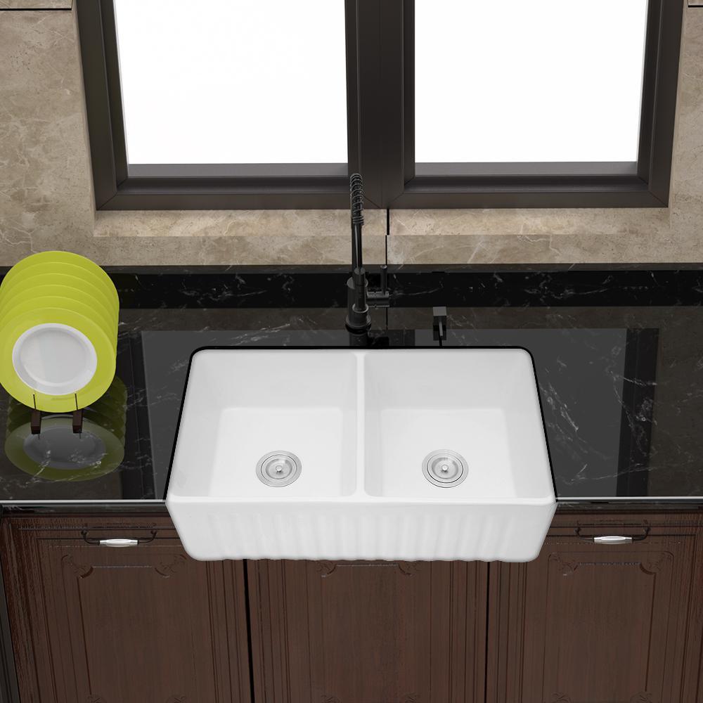 The farmhouse styling creates a classic country look, and the fireclay construction is strong enough for a busy kitchen. The double-bowl design with full height separator allows you the convenience of multi-tasking in the kitchen. The 50/50 split ensures there is enough room to fill a pot and soak dishes simultaneously. Pairs beautifully with any kitchen faucet for a modern look.