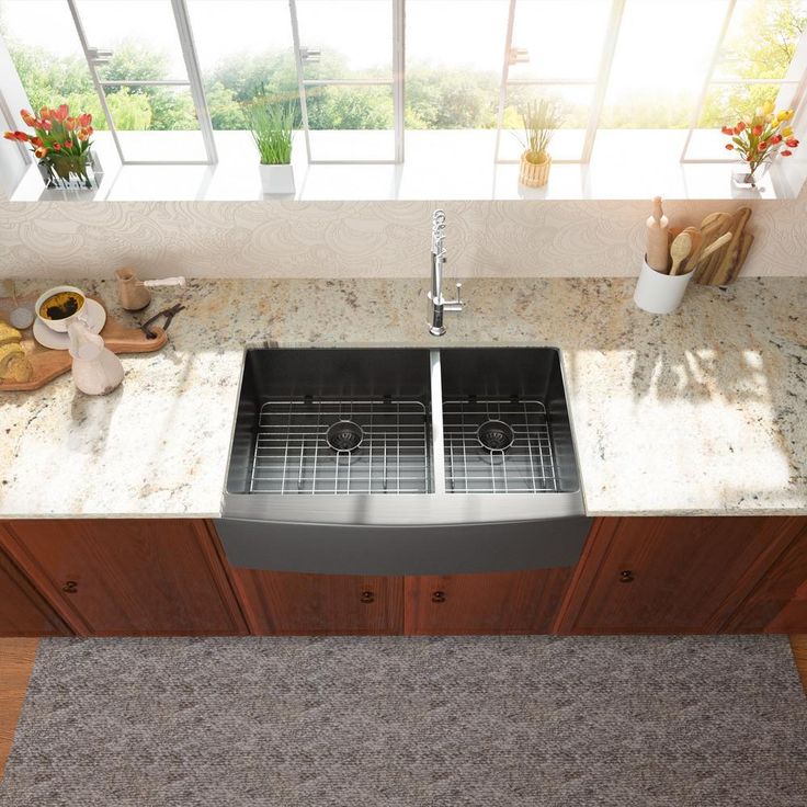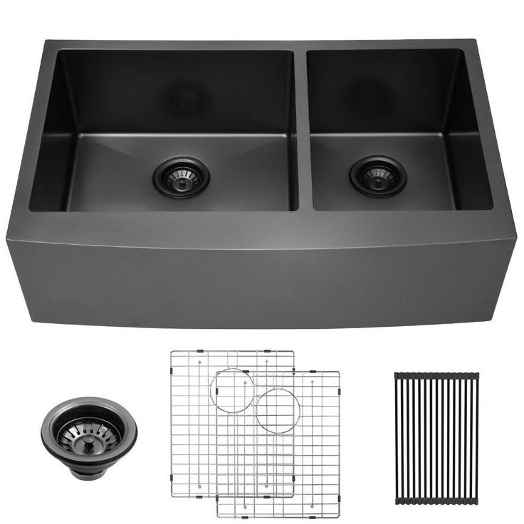 Stainless Steel 33 in. Gunmetal Black Double Bowl Farmhouse Apron Front Kitchen Sink 60/40 16-Gauge Farm Sink