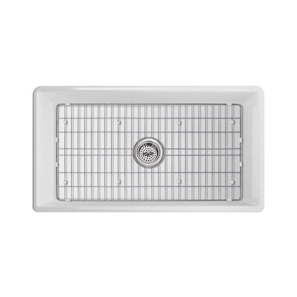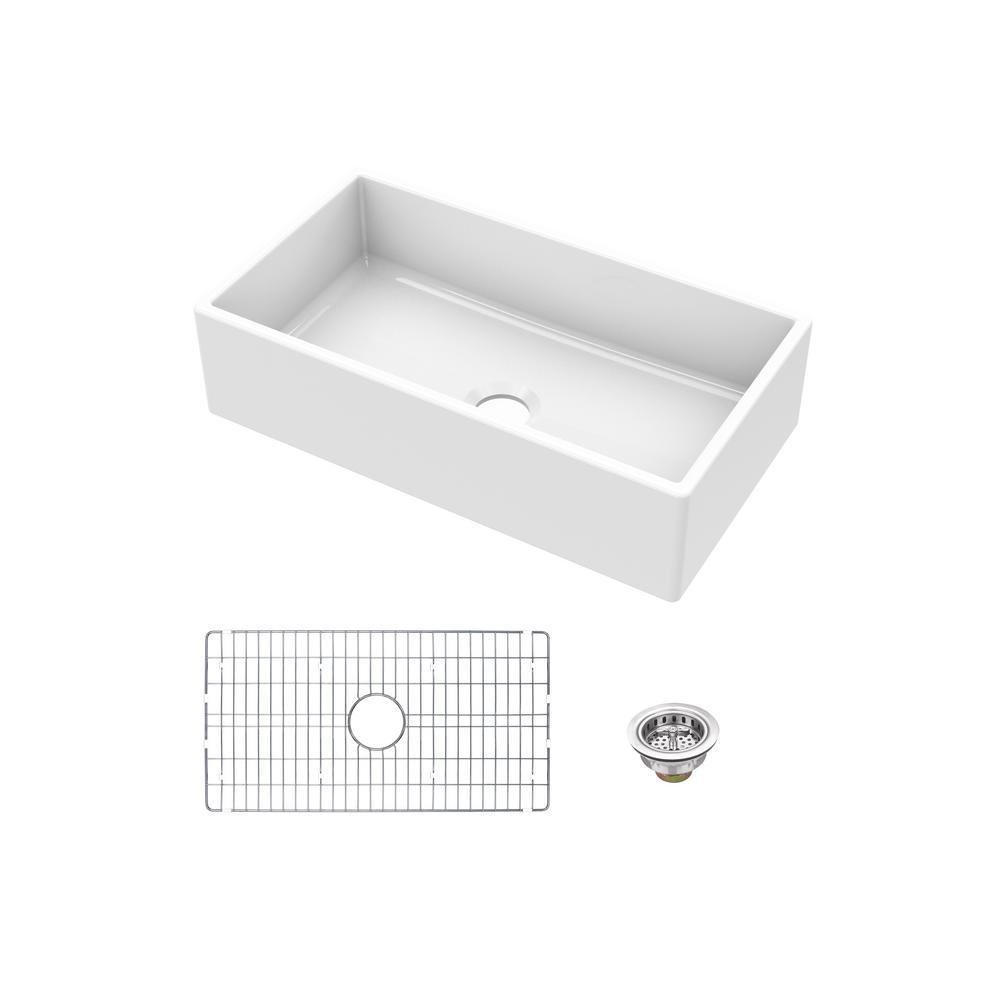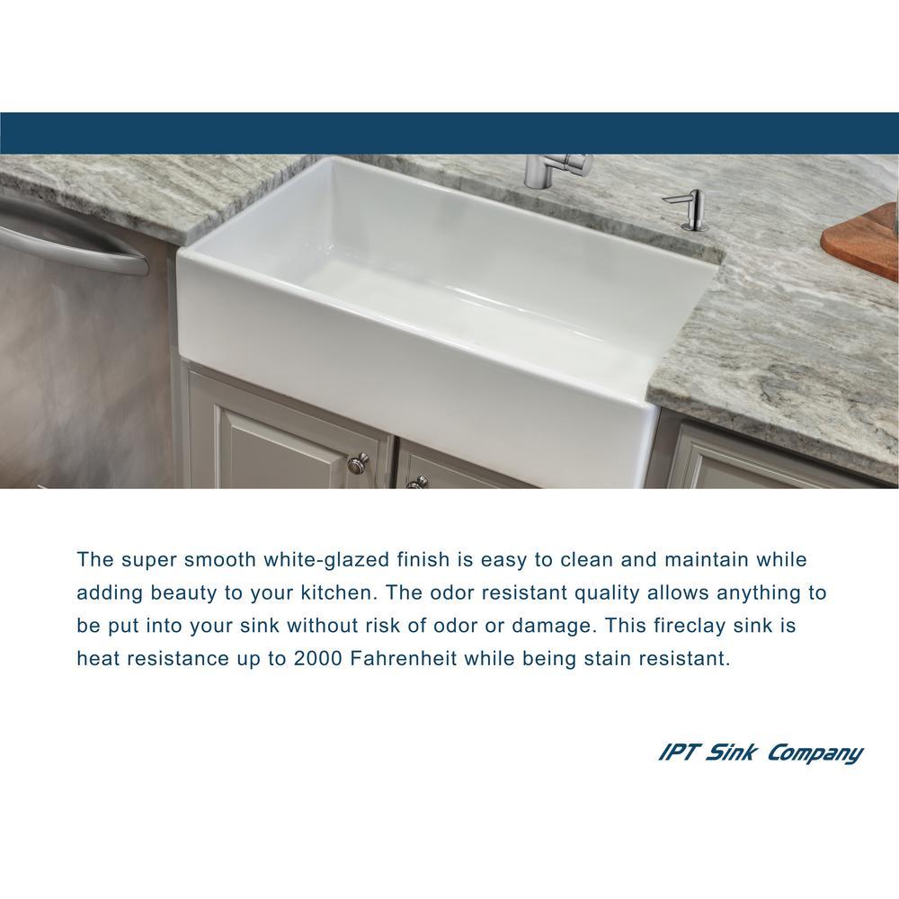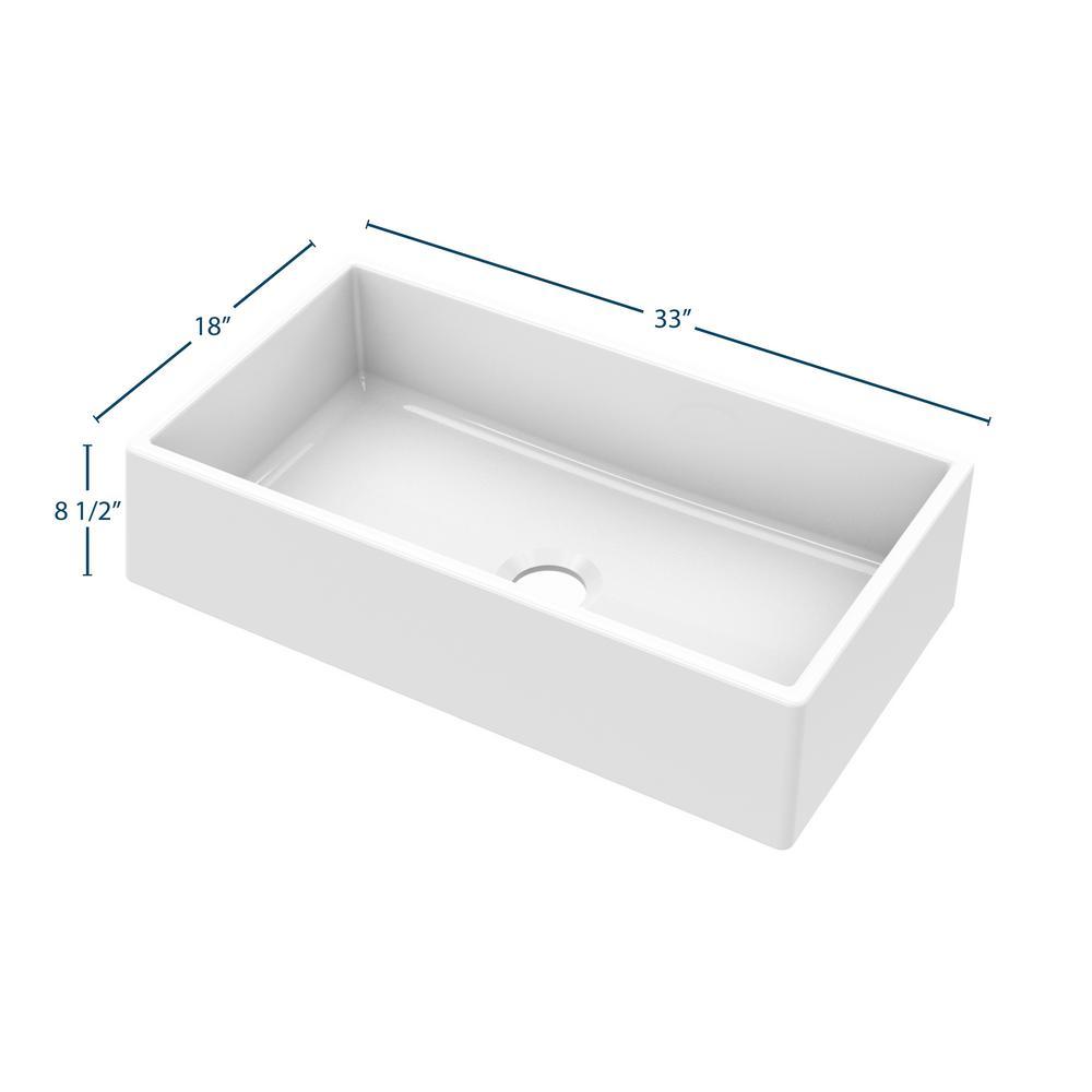 Enduring in beauty and performance, this apron front kitchen sink is a fashionable kitchen fixture with modern farmhouse charm. The white sink is sculpted from fireclay and exposed to extreme temperatures, developing a smooth enamel finish that's strong, stain resistant and stands up to everyday use. The versatile undermount format can be installed as floating sink or flush beside kitchen cabinetry. Crafted by hand with exceptional care, smooth design details throughout the rectangular basin and apron front panel enhance the sink's artisanal appearance.