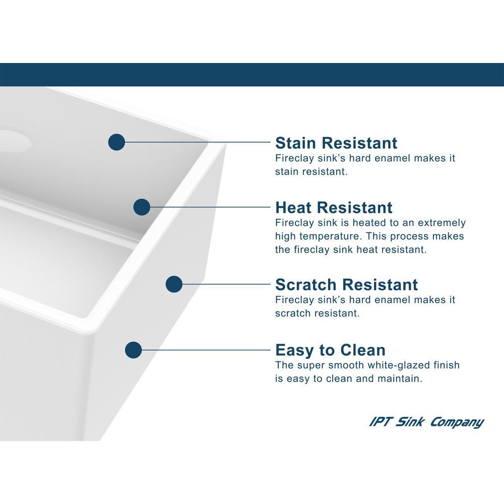 • Fireclay sink features a fade-resistant white glazed finish stays shiny and bright for years to come
