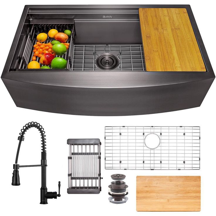 All-in-One Matte Black Finished Stainless Steel 33 in. x 20 in. Farmhouse Apron Mount Kitchen Sink with Faucet