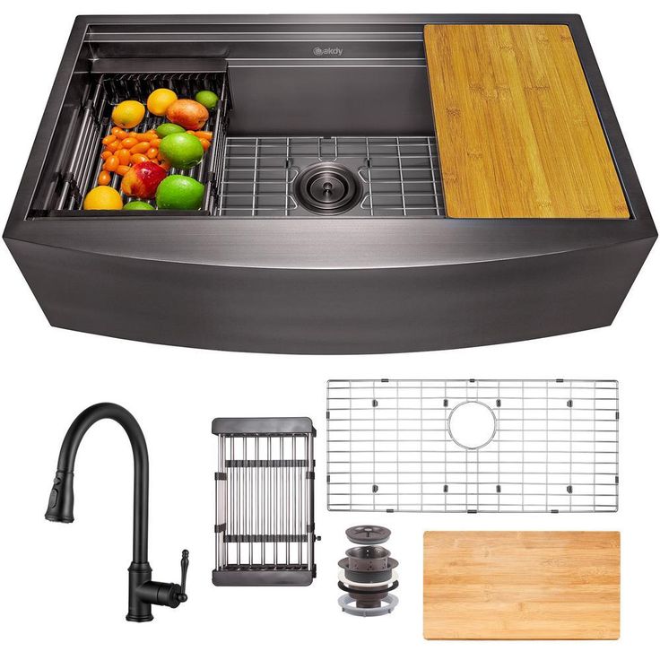 All-in-One Matte Black Finished Stainless Steel 33 in. x 20 in. Farmhouse Apron Mount Kitchen Sink with Pull-down Faucet