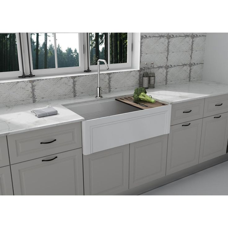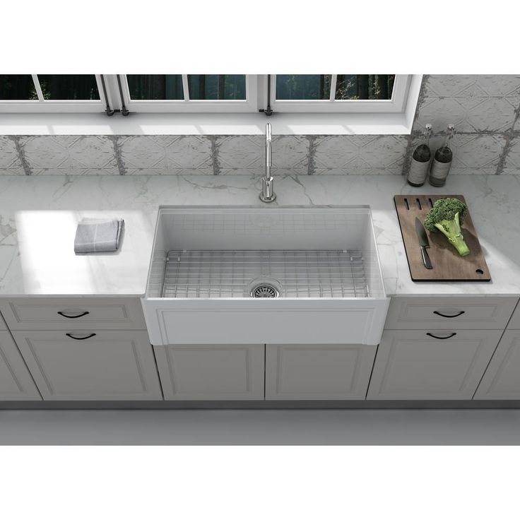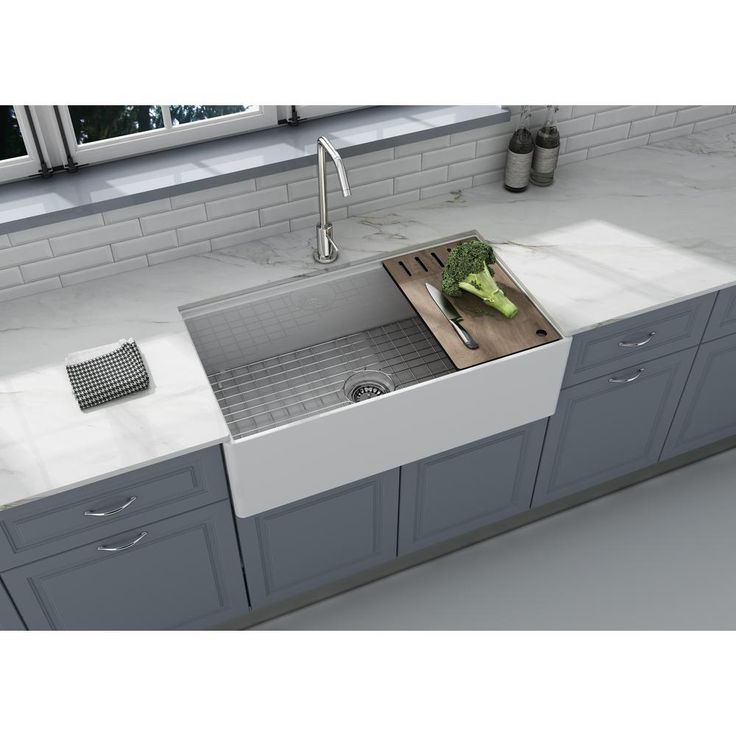 Delux Fireclay 33 in. Single Bowl Farmhouse Kitchen Sink with workstation