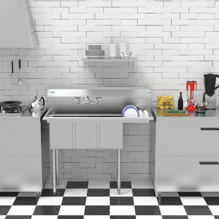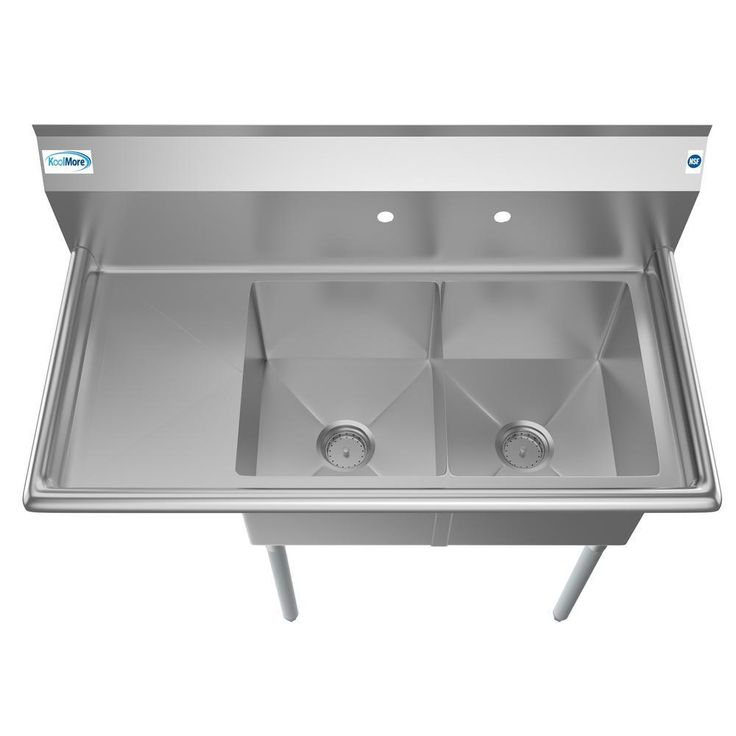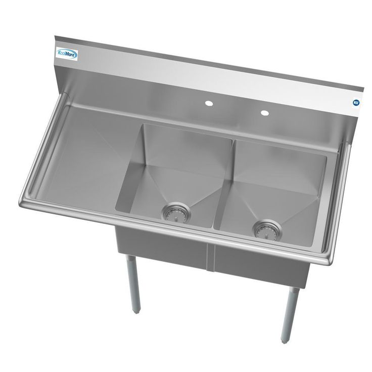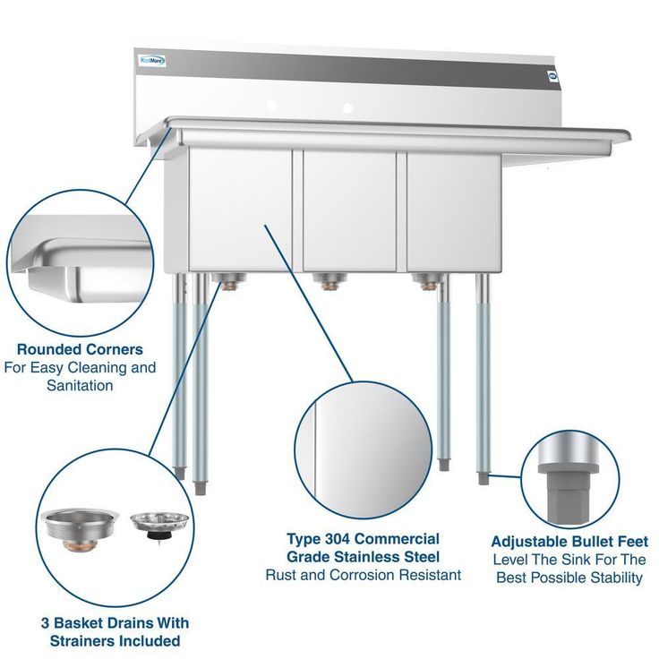 45 in. Freestanding Stainless Steel 2-Hole Triple Bowl Commercial Kitchen Sink