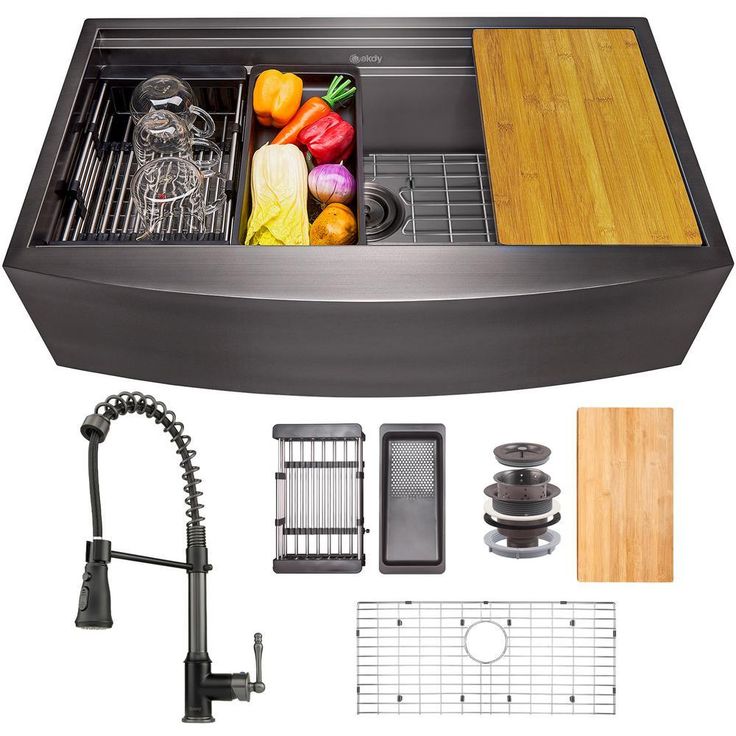 All-in-One Matte Black Finished Stainless Steel 33 in. x 22 in. Single Bowl Farmhouse Apron Kitchen Sink with Faucet