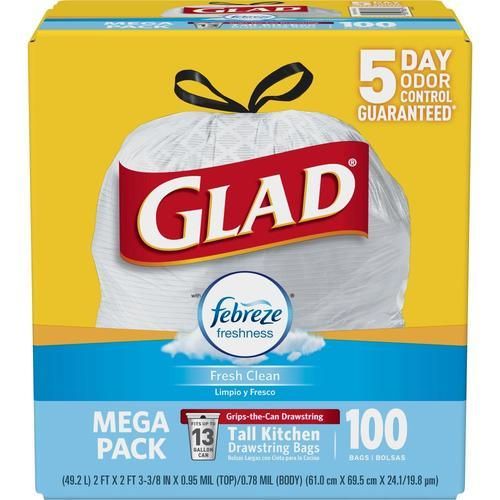 Glad 100-Pack 13-Gallon Fresh Clean Gray Plastic Kitchen Trash Bag