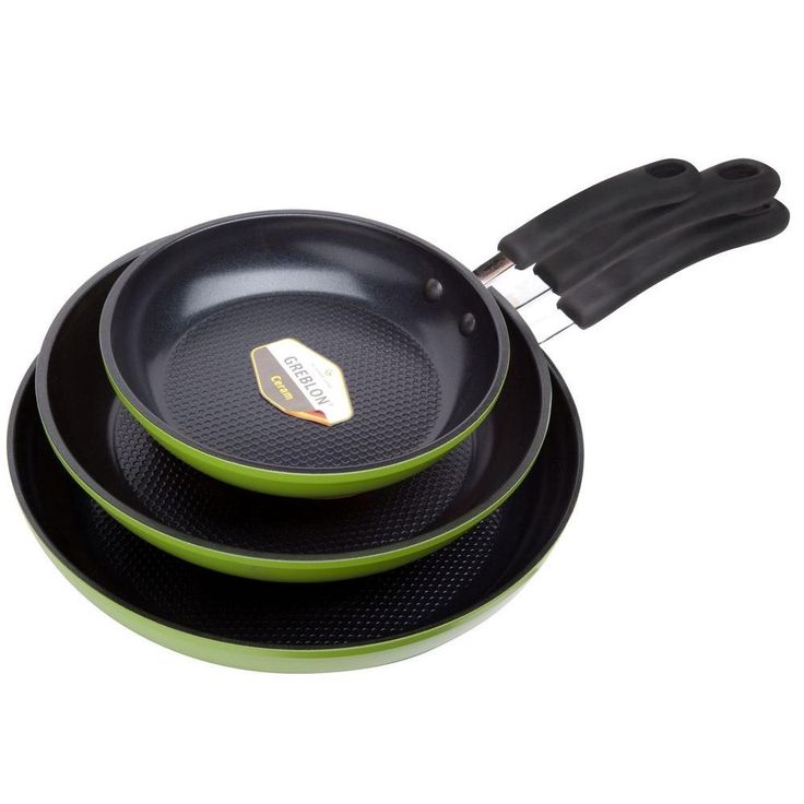 Green Earth 3-Piece Aluminum Ceramic Nonstick Frying Pan Set in Green