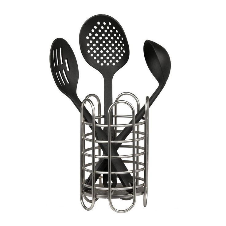 Simplicity Satin Nickel Free-Standing Utensil and Cutlery Holder with Quick Draining Holes