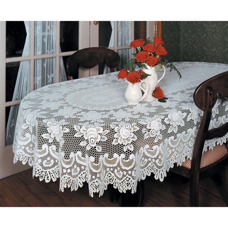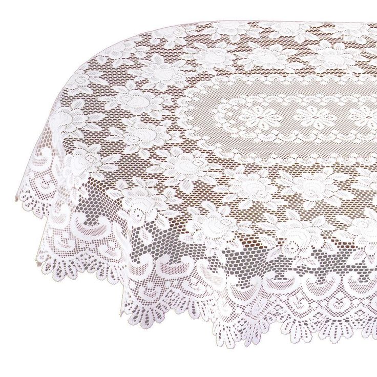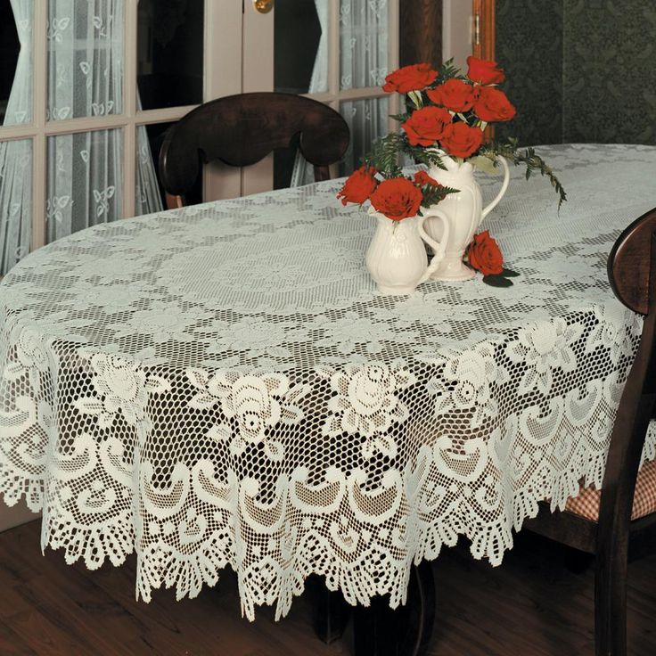 Rose Oval Off-White Polyester Tablecloth