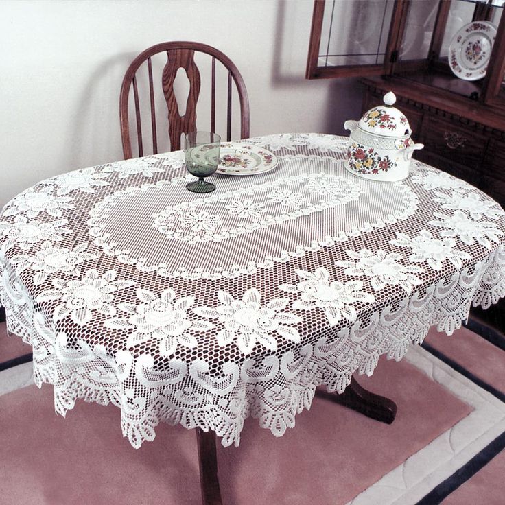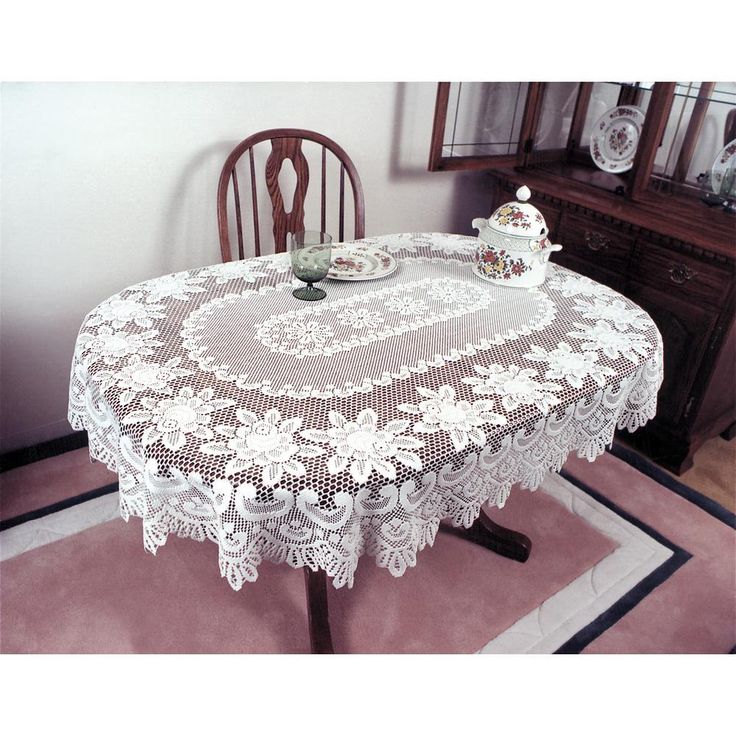 Rose Oval Off-White Polyester Tablecloth