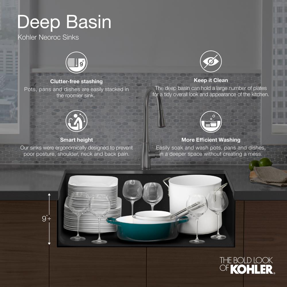 • KOHLER Neoroc composite is durable and built to withstand day-to-day tasks