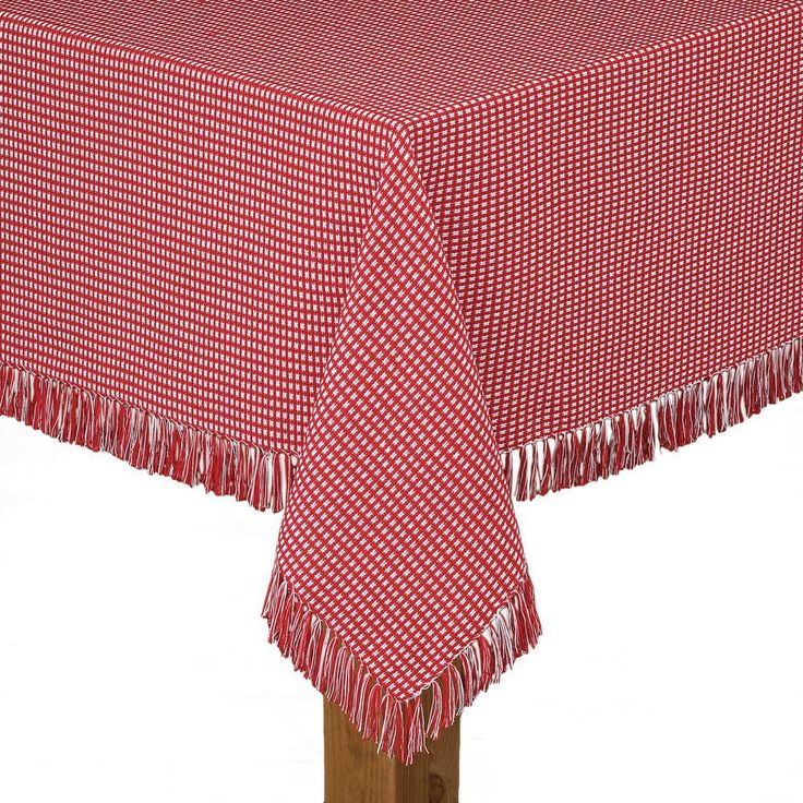 Homespun Fringed 60 in. x 102 in. Red 100% Cotton Tablecloth
