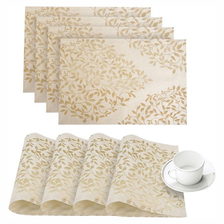 Spring Time Gold Linen-Blend Printed Fabric Placemat (Set of 4)