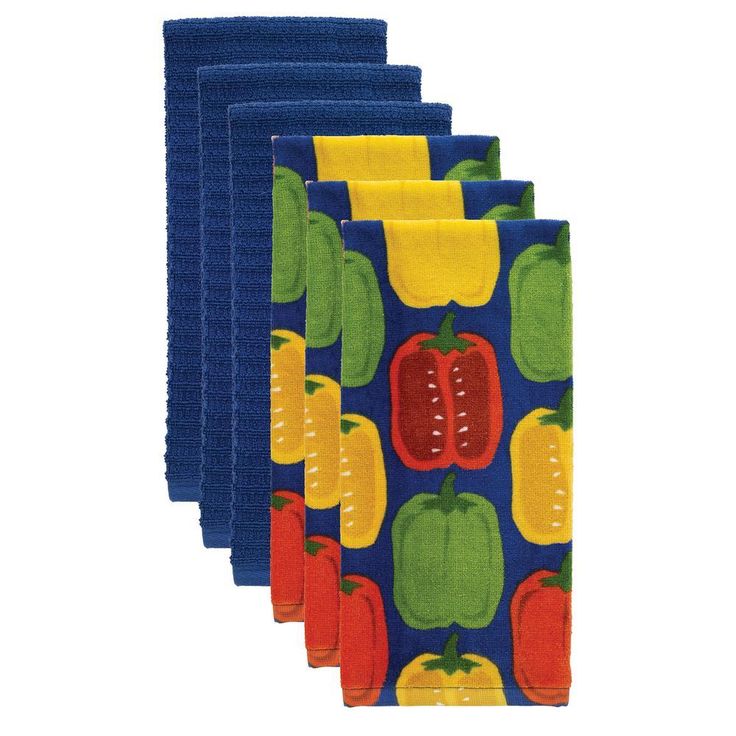 T-fal Peppers Multicolor Cotton Fiber Reactive Print and Solid Kitchen Dish Towel (Set of 6)