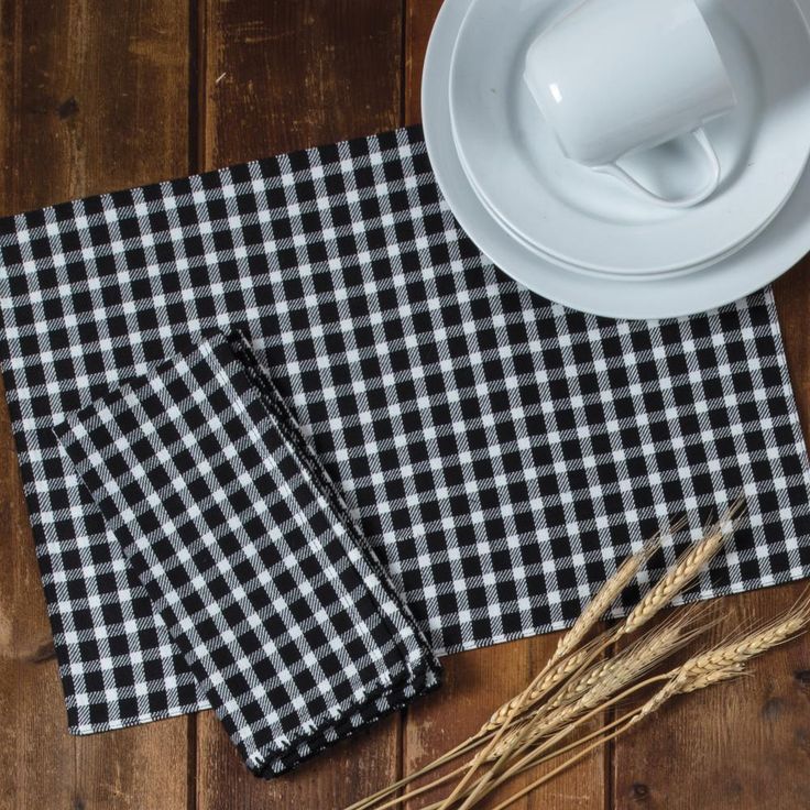 Farmhouse 19 in. x 13 in. Black and White Cotton Gingham Placemats (Set of 4)