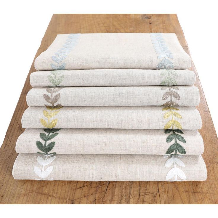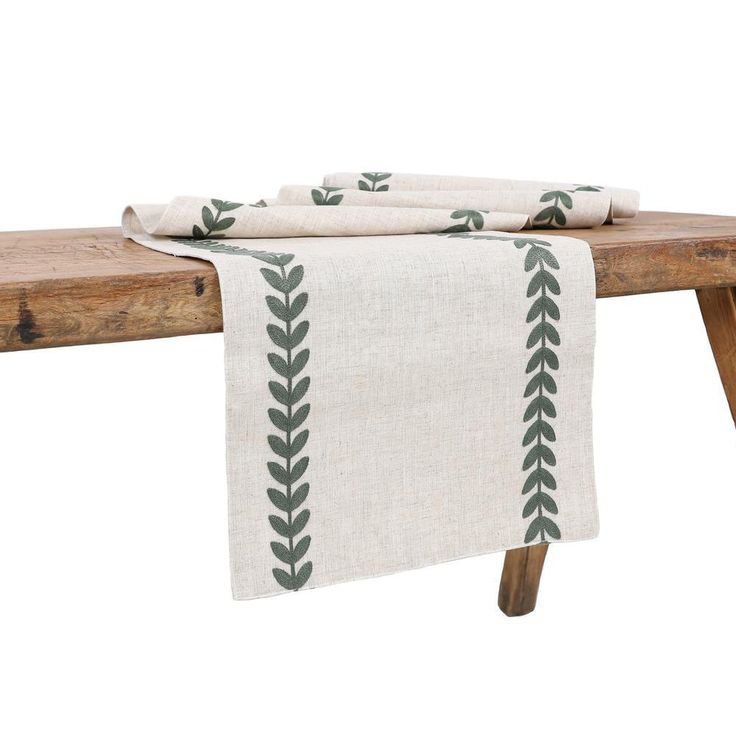 15 in. x 70 in. Cute Leaves Crewel Embroidered Table Runner, Pine Green/Natural