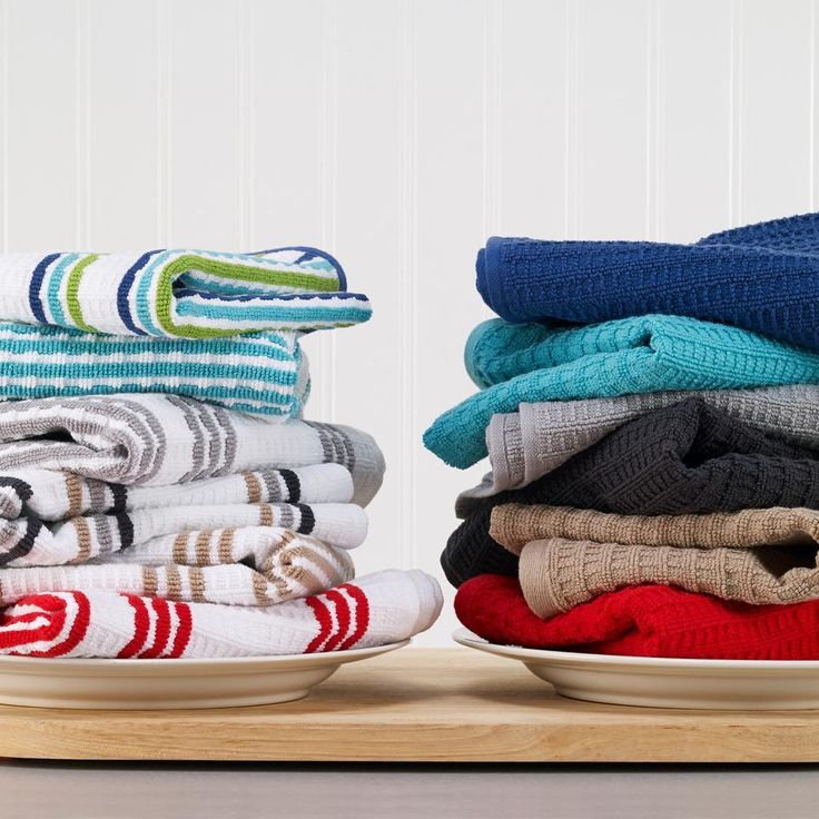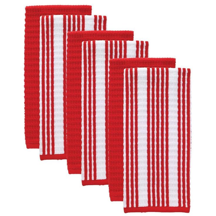 T-Fal Red Solid and Stripe Cotton Waffle Terry Kitchen Dish Towel (Set of 6)