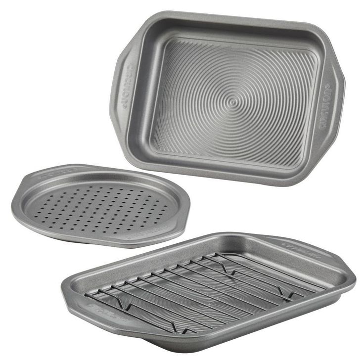 Total Bakeware Nonstick Toaster Oven and Personal Pizza Pan Baking Set, Gray, 4-Piece