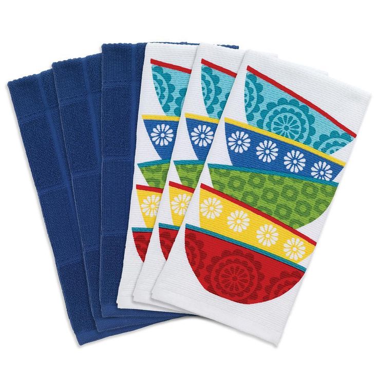 T-fal Multicolor Dish Stack Cotton Print Dual and Solid Kitchen Dish Towel (Set of 6)