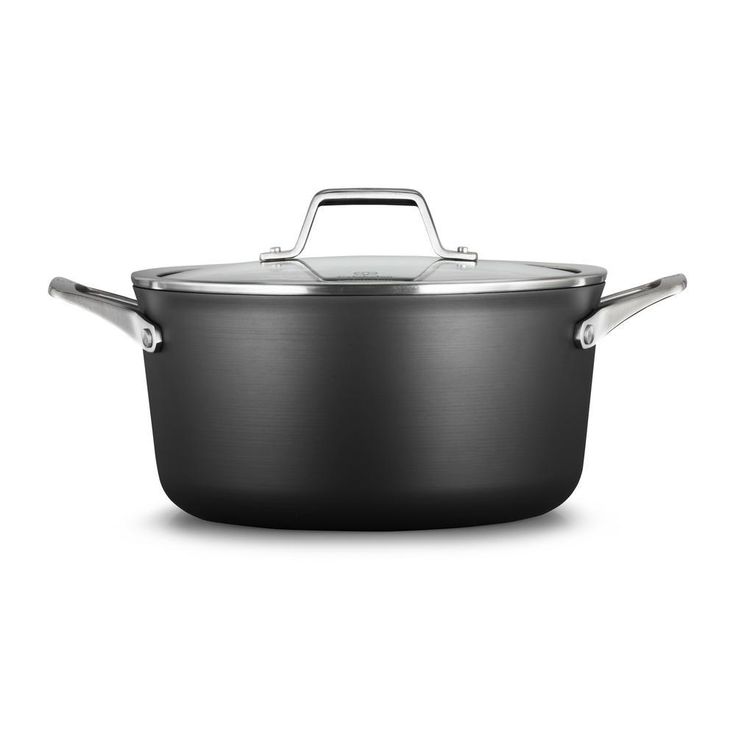 Premier 6 qt. Hard-Anodized Aluminum Nonstick Stock Pot in Black with Glass Lid