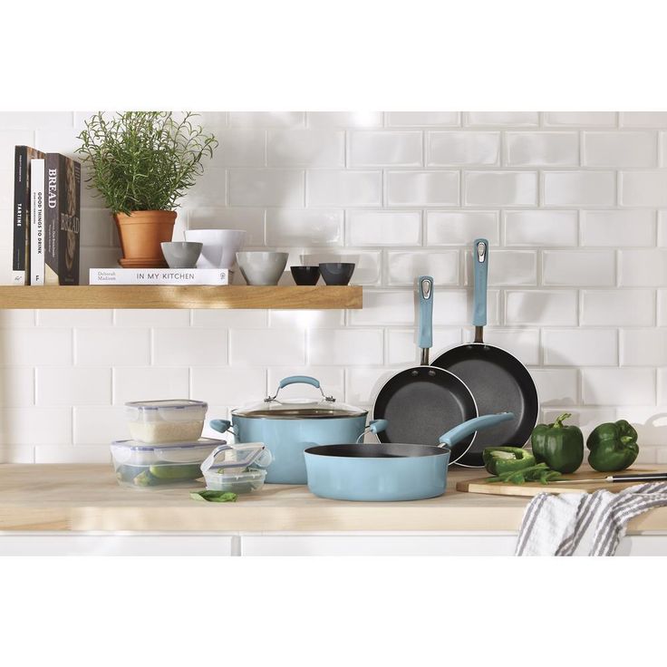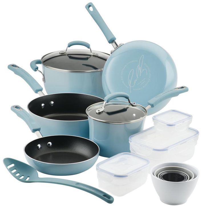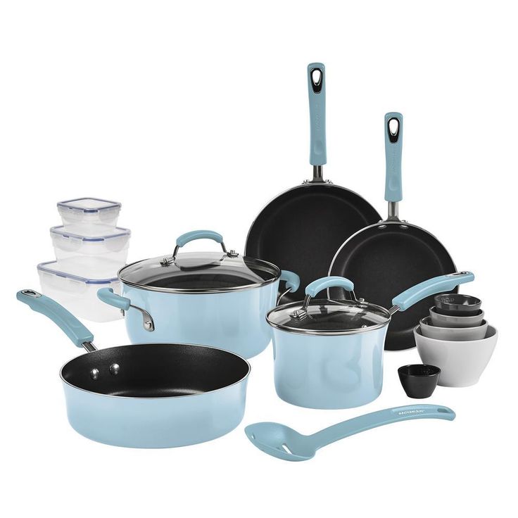 Blue Nonstick Cookware Set with Containers, 19-Piece