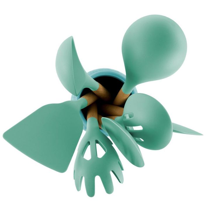 Mint Green Silicone and Wood Cooking Utensils (Set of 9)