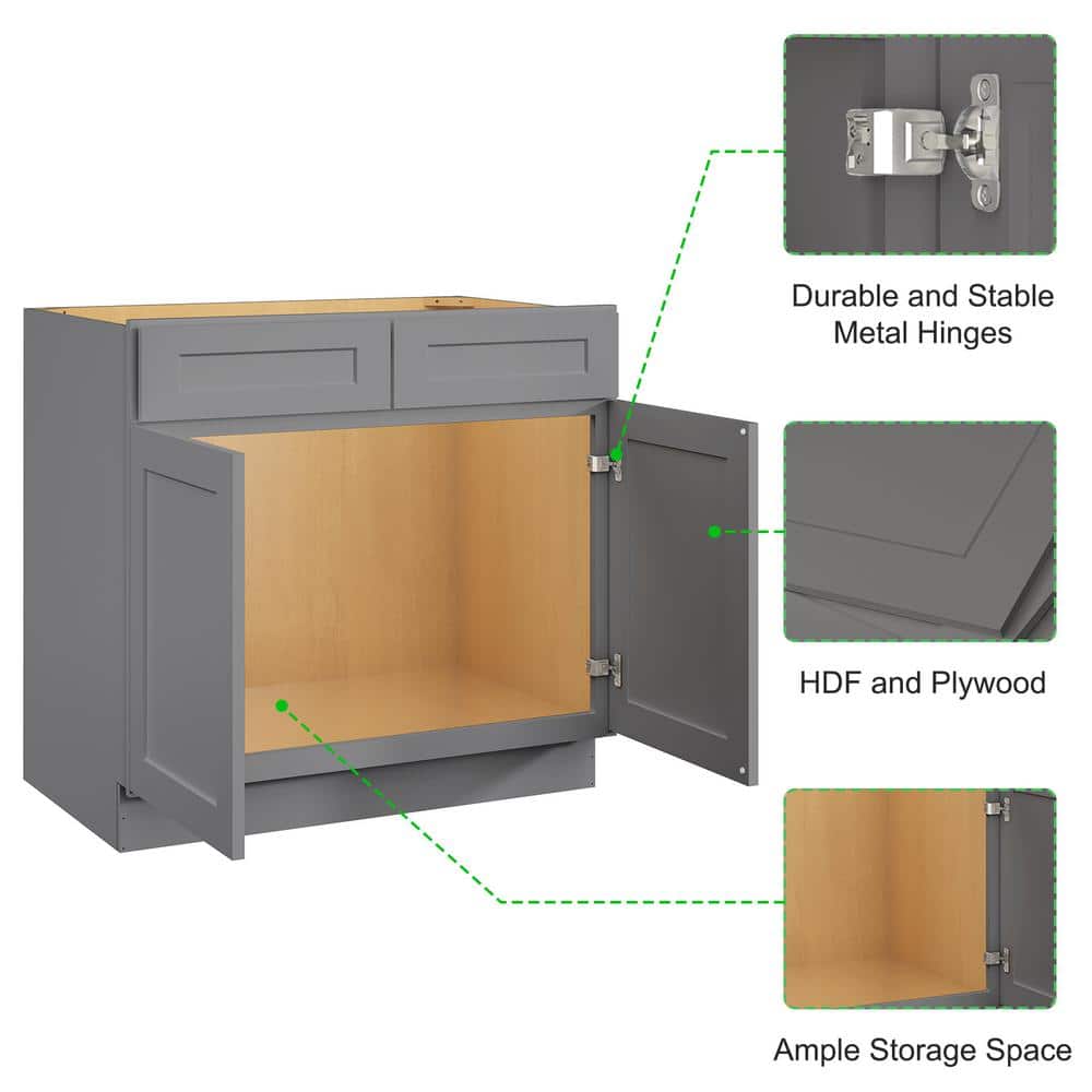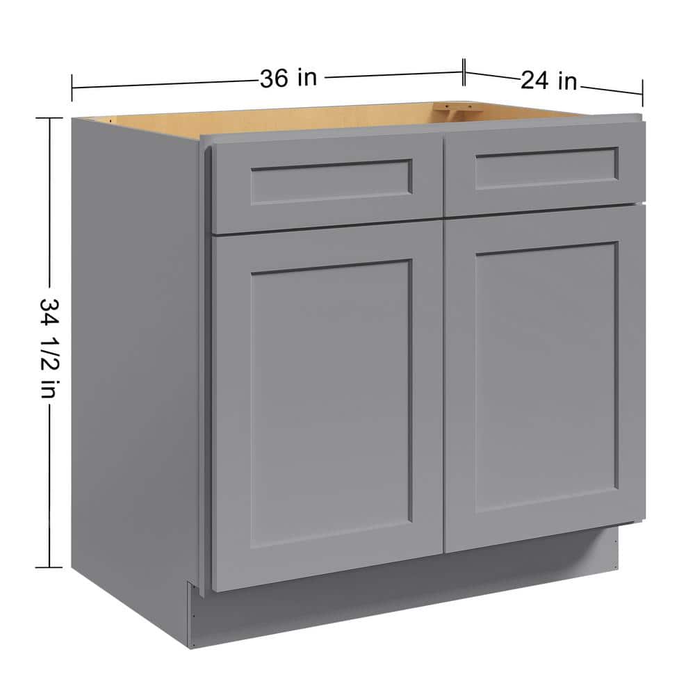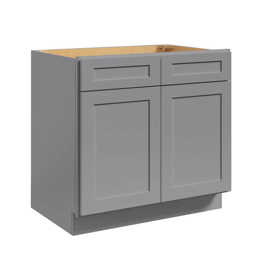 36 in. W. x 24 in. D x 34.5 in. H in Shaker Grey Plywood Ready to Assemble Sink Base Cabinets with Shelf