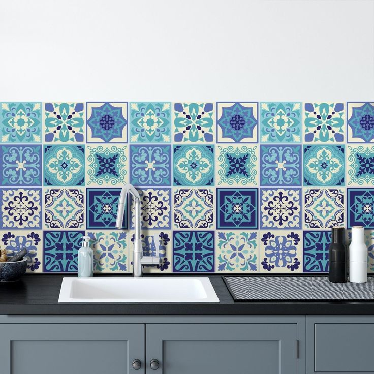 Walplus Peel and Stick Wall Tile Sticker Kitchen Bathroom Backsplash Splashback Tile Paint Stick on Tile Daliah Blue and Turquoise Mediterranean