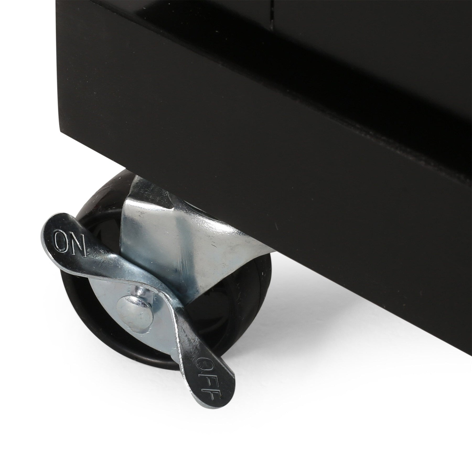 Elevate your kitchen's functionality and style with the BABOOM Black Rolling Kitchen Cart. Featuring a durable composite base and top, this sleek unit provides extra counter space, a spacious drawer, and a double-door cabinet for optimal storage solutions. Ideal for modern interiors, its minimalist design ensures both practicality and an appealing aesthetic.