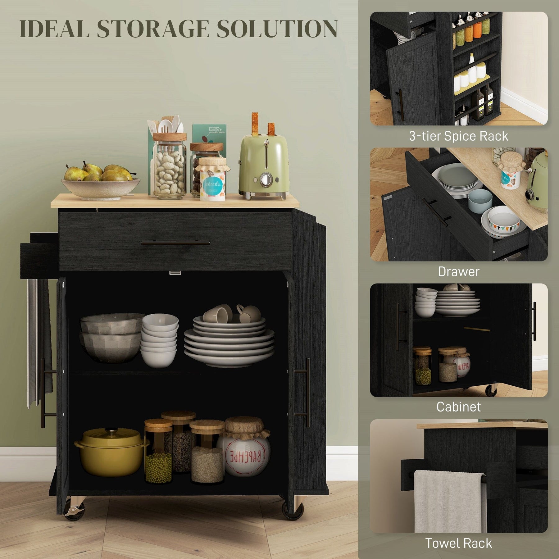 BABOOM Black Mdf Base with Mdf Wood Top Rolling Kitchen Island (15-in x 29.9-in x 34.1-in)