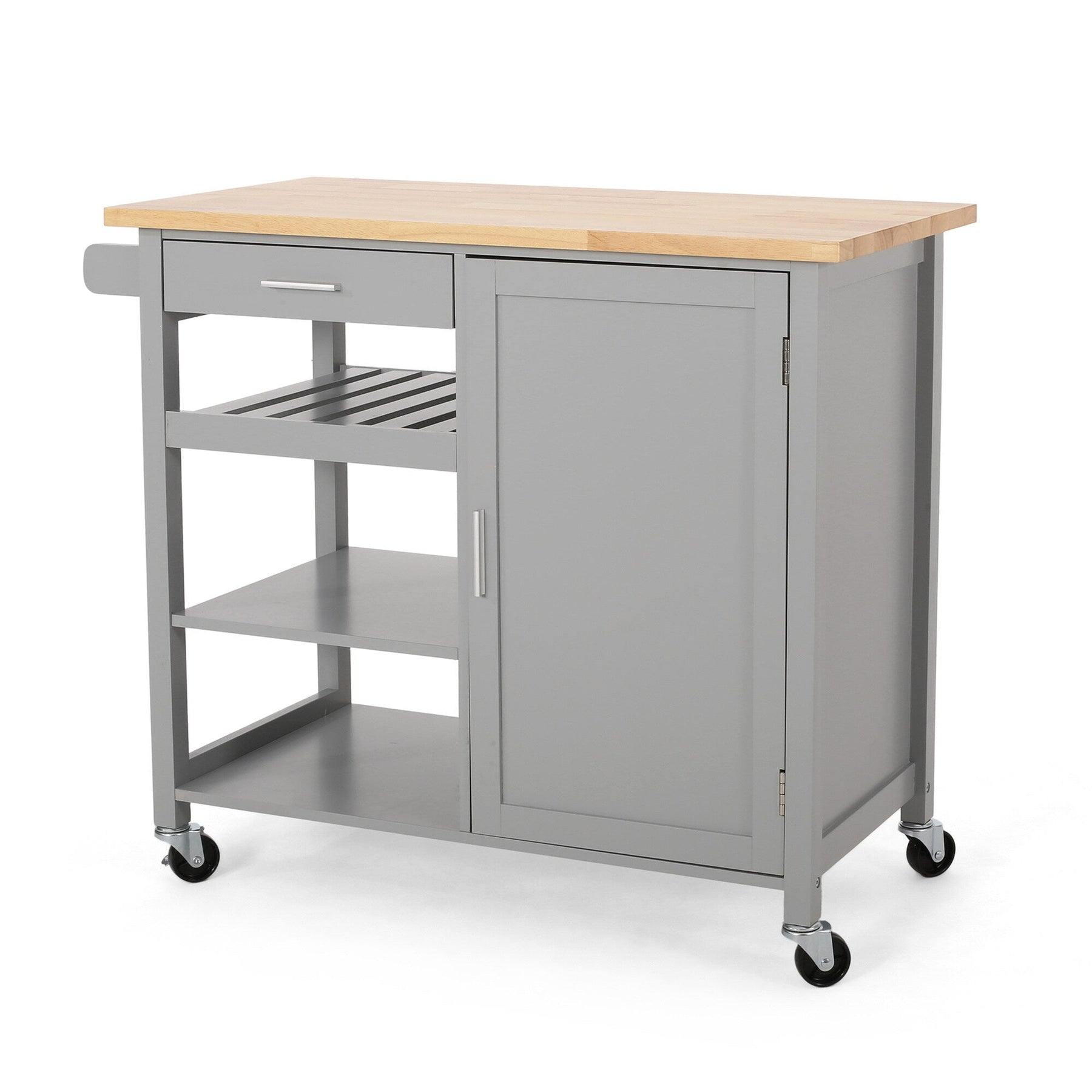 BABOOM Gray Wood Base with Wood Top Rolling Kitchen Cart (18.9-in x 41.75-in x 35.25-in)